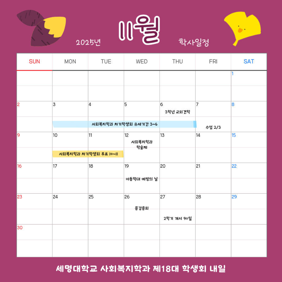본문 시작 홈으로 커뮤니티 학과소개 교수소개 교육과정 현장실습 및 취업정보 커뮤니티 홈페이지가이드 학사일정 학과공지 학사일정 학생회 동아리 학생 소통 광장 포토갤러리 전공자료실 서식자료실 학사일정 페이스북 트위터 프린트 11월 학사 일정 사회복지학과 689 2025-10-30 11월 학사 일정 입니다. 목록 이전10월 학사 일정 다음 12월 학사 일정 담당부서 : 사회복지학과 담당자 : - 연락처 : 043-649-1799 최종수정일 : 2024-10-26 만족도조사 만족도 조사 이 페이지에서 제공하는 정보에 대하여 만족하시나요? 매우만족 만족 보통 불만족 매우불만족