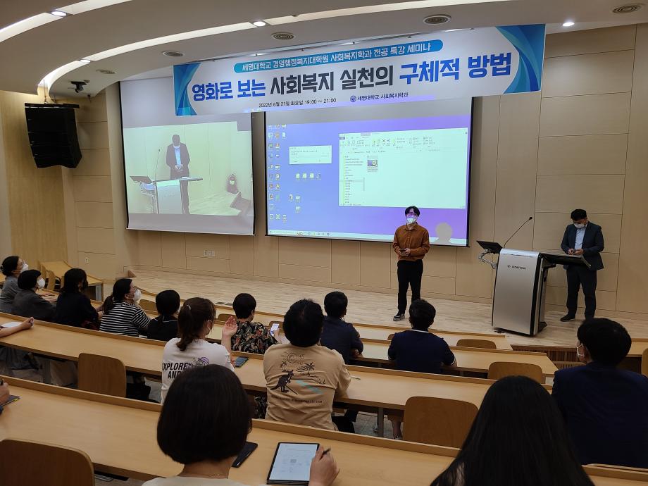 본문 시작 홈으로 커뮤니티 학과소개 교수소개 교육과정 현장실습 및 취업정보 커뮤니티 홈페이지가이드 학생 소통 광장 학과공지 학사일정 학생회 동아리 학생 소통 광장 포토갤러리 전공자료실 서식자료실 학생 소통 광장 페이스북 트위터 프린트 세명대학교 경영행정복지대학원 전공특강 세미나 사회복지학과 3064 2022-06-22 지난 6월 21일 18:30분부터 학술관 102호 제 2 컨퍼런스 홀에서 세명대학교 경영행정복지대학원 학생분들을 대상으로 전공특강 세미나를 진행하였습니다. 강연하시는 분은 현재 사회복지실천과교육연구소에 소장으로 있으신 이경국 소장님이시며, ' 영화(부산행)로 보는 사회복지실천'을 주제로 강연을 성공적으로 진행하셨습니다. 목록 이전세명대학교 사회복지학과 졸업 후 진로 장애인그룹홈편 다음 세명대학교 사회복지학과 졸업 후 진로 건강가정지원센터 편 담당부서 : 사회복지학과 담당자 : - 연락처 : 043-649-1799 최종수정일 : 2024-10-26 만족도조사 만족도 조사 이 페이지에서 제공하는 정보에 대하여 만족하시나요? 매우만족 만족 보통 불만족 매우불만족