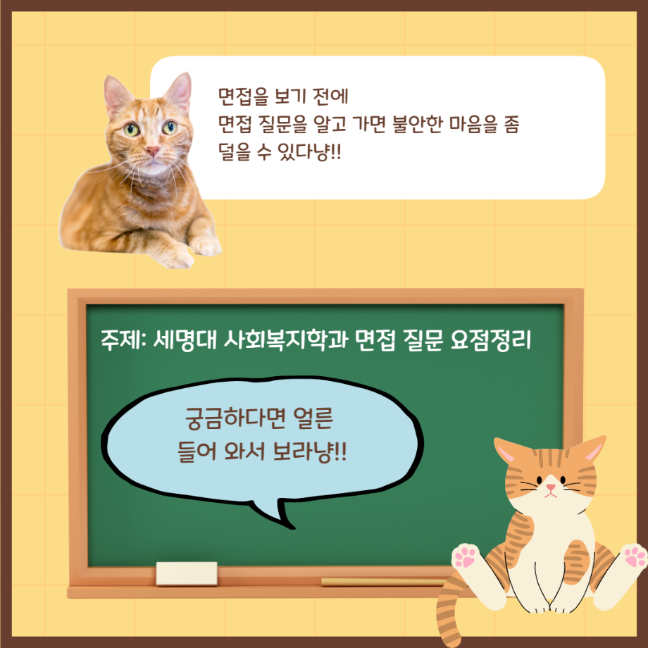 본문 시작 홈으로 커뮤니티 학과소개 교수소개 교육과정 현장실습 및 취업정보 커뮤니티 홈페이지가이드 학생 소통 광장 학과공지 학사일정 학생회 동아리 학생 소통 광장 포토갤러리 전공자료실 서식자료실 학생 소통 광장 페이스북 트위터 프린트 세명대학교 사회복지학과 면접질문이 궁금하다면 나만따라와!! 사회복지학과 2978 2022-09-19 '세명대학교 사회복지학과 면접질문이 궁금하다면 나만따라와!!'편 입니다. 목록 이전교수님께 물어보는 봉사는 무엇일까?_정규형 교수님 편 다음 박소영 교수님 무슨 책을 읽어야 할지 알려 주세요!! 담당부서 : 사회복지학과 담당자 : - 연락처 : 043-649-1799 최종수정일 : 2024-10-26 만족도조사 만족도 조사 이 페이지에서 제공하는 정보에 대하여 만족하시나요? 매우만족 만족 보통 불만족 매우불만족