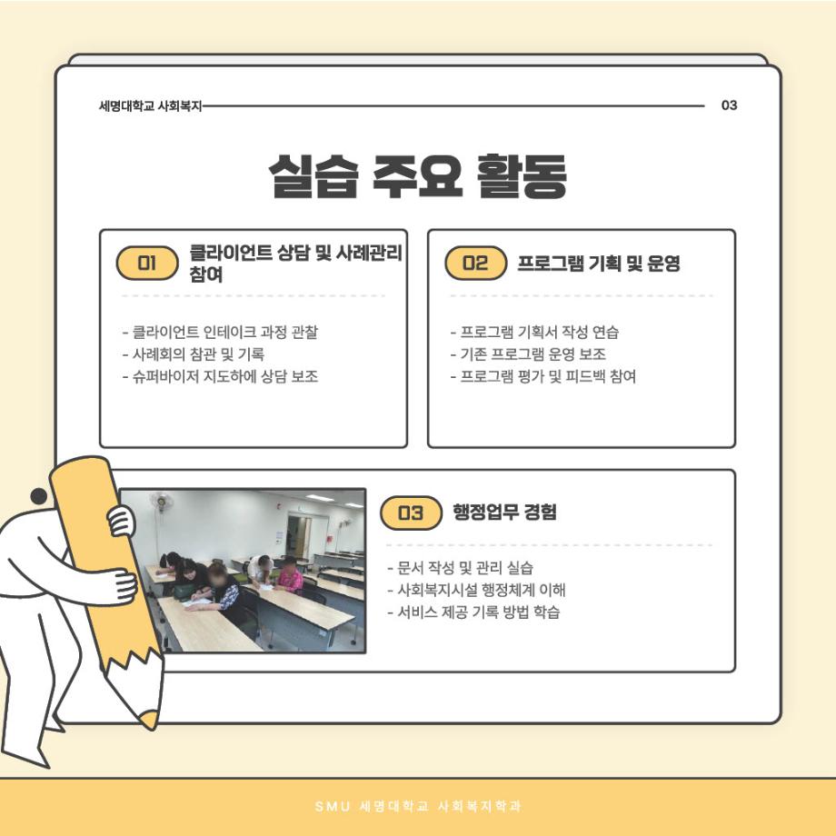본문 시작 홈으로 커뮤니티 학과소개 교수소개 교육과정 현장실습 및 취업정보 커뮤니티 홈페이지가이드 학생 소통 광장 학과공지 학사일정 학생회 동아리 학생 소통 광장 포토갤러리 전공자료실 서식자료실 학생 소통 광장 페이스북 트위터 프린트 사회복지현장실습 과정 안내 사회복지학과 1670 2025-09-03 오늘은 '사회복지현장실습 과정 안내'편입니다~ 목록 이전사회복지현장실습 알고 가자! 다음 중간고사 응원 간식나눔 담당부서 : 사회복지학과 담당자 : - 연락처 : 043-649-1799 최종수정일 : 2024-10-26 만족도조사 만족도 조사 이 페이지에서 제공하는 정보에 대하여 만족하시나요? 매우만족 만족 보통 불만족 매우불만족