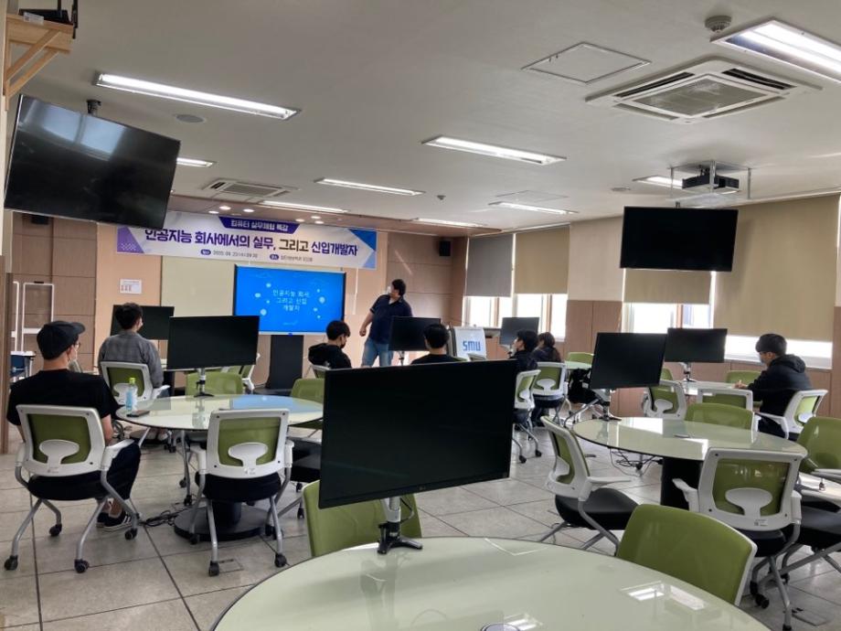 본문 시작 홈으로 학부활동 학부소개 학부활동 교육과정 커뮤니티 학부생활 입학안내 홈페이지가이드 학부갤러리 학부행사 학생회 활동 전공 동아리 학부갤러리 학부갤러리 페이스북 트위터 프린트 컴퓨터 실무체험 2차 학술특강 컴퓨터학부 7042 2020-09-23 인공지능 회사에서의 실무, 그리고 신입개발자 목록 이전컴퓨터 실무체험 1차 학술특강 다음 졸업생 특강 담당부서 : 컴퓨터학부 담당자 : - 연락처 : 043-649-1272 최종수정일 : 2024-10-26 만족도조사 만족도 조사 이 페이지에서 제공하는 정보에 대하여 만족하시나요? 매우만족 만족 보통 불만족 매우불만족