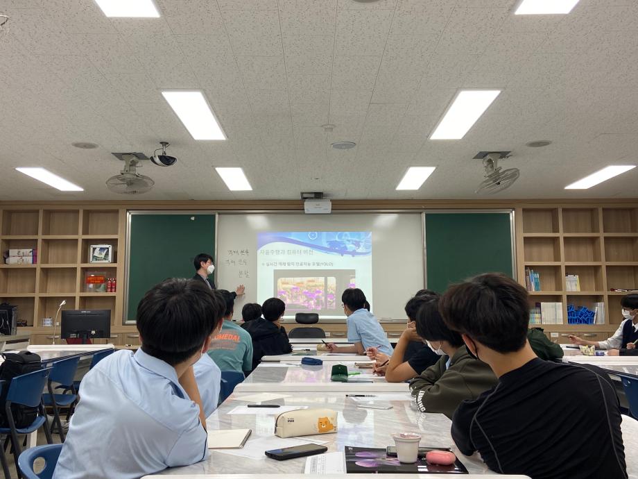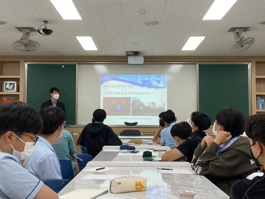 본문 시작 홈으로 학부활동 학부소개 학부활동 교육과정 커뮤니티 학부생활 입학안내 홈페이지가이드 학부갤러리 학부행사 학생회 활동 전공 동아리 학부갤러리 학부갤러리 페이스북 트위터 프린트 충북진로교육원 주관 찾아가는 고교특강 '세명고등학교' 특강 컴퓨터학부 2891 2022-05-23 우리 컴퓨터학부에서 충북진로교육원이 주관하는 찾아가는 고교특강을 세명고등학교를 대상으로 진행하였습니다. 주제는 최근 많은 관심을 받고 있는 '인공지능 기술과 미래'에 관한 주제로 세부 주제는 자율주행과 컴퓨터비젼으로 고등학생들이 컴퓨터 분야에 흥미를 가질 수 있는 내용을 진행되었습니다. 장소: 세명고등학교 일시: 2022년 5월 19일 19:00~20:30 목록 이전컴퓨터학부 학과체험 프로그램 고등학생 대상 특강 진행 완료 다음 2022학년도 컴퓨터학부 농촌봉사활동(수산면 수곡리) 담당부서 : 컴퓨터학부 담당자 : - 연락처 : 043-649-1272 최종수정일 : 2024-10-26 만족도조사 만족도 조사 이 페이지에서 제공하는 정보에 대하여 만족하시나요? 매우만족 만족 보통 불만족 매우불만족