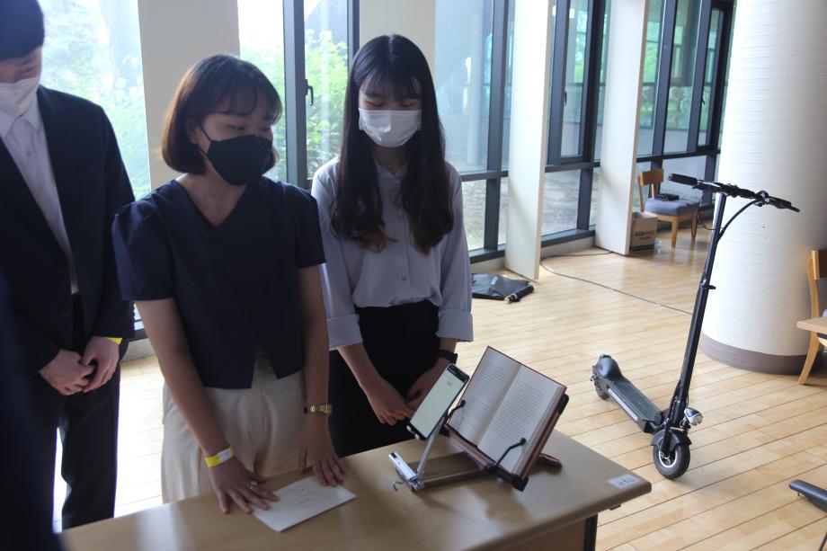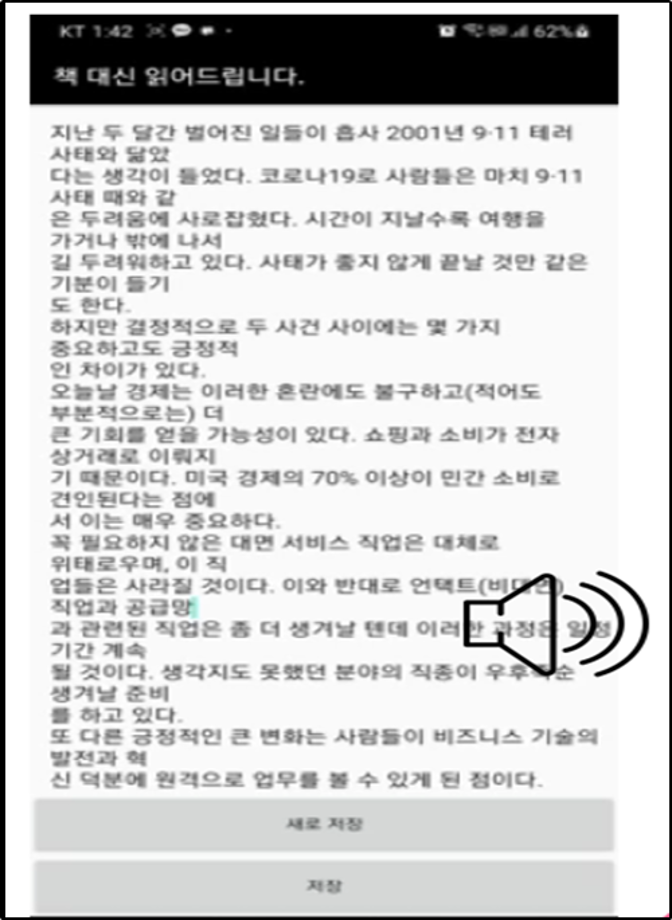 본문 시작 홈으로 SMIT 소식 SMIT 소개 SMIT 교육 SMIT 취업 SMIT 소식 SMIT 입학 홈페이지가이드 경진대회 공지사항 갤러리 경진대회 동아리 경진대회 페이스북 트위터 프린트 2021 캡스톤디자인 우수상 책 읽어드립니다 스마트IT학부 4318 2021-09-01 우수상 - 작품명 : 책 읽어드립니다. - 지도교수 : 권혁민 - 팀원 : 김형철, 강주원, 김진영, 공수현 시각장애인의 수는 많고 후천적 장애 발병률도 늘어가는 추세인데 독서를 하기 위한 충분한 인프라가 갖춰져 있지 않아 쉽게 접근 가능하도록 음성 인식과 음성 출력, 문자인식을 이용하여 어플을 제작하였다. 목록 이전2021 캡스톤디자인 장려상 Fitting go 다음 2021 캡스톤디자인 우수상 Arduino 기반 자동 높이 조절기능의 안면 체온 측정 장치 담당부서 : 스마트IT학부 담당자 : - 연락처 : 043-649-1275 최종수정일 : 2024-10-26 만족도조사 만족도 조사 이 페이지에서 제공하는 정보에 대하여 만족하시나요? 매우만족 만족 보통 불만족 매우불만족