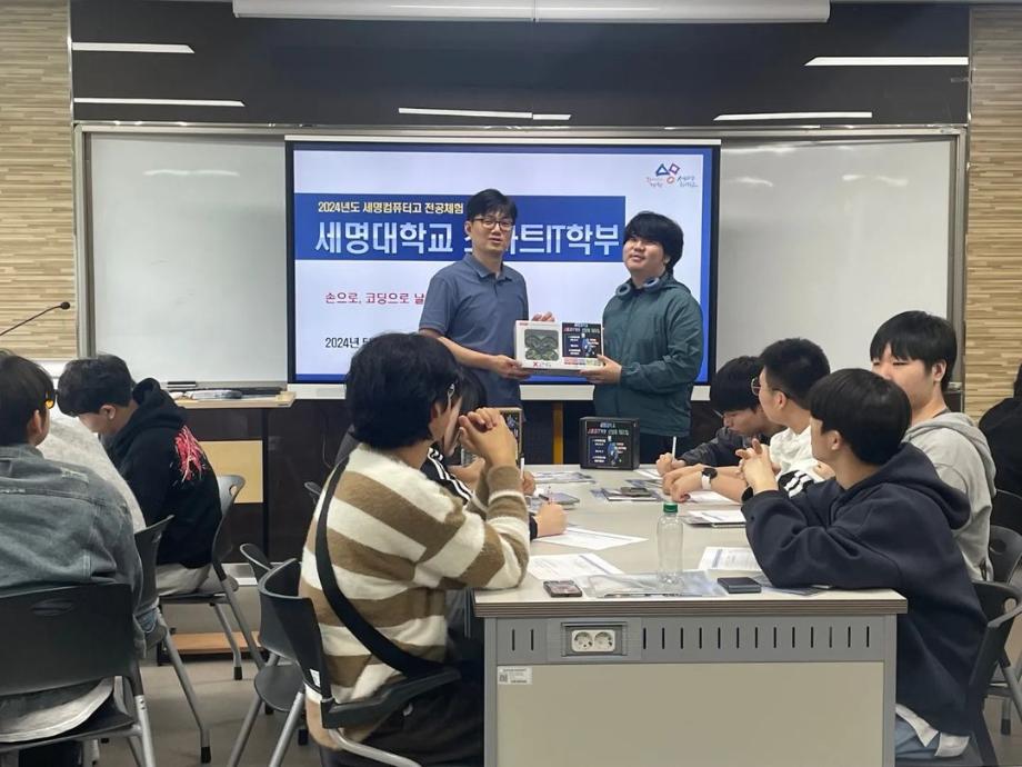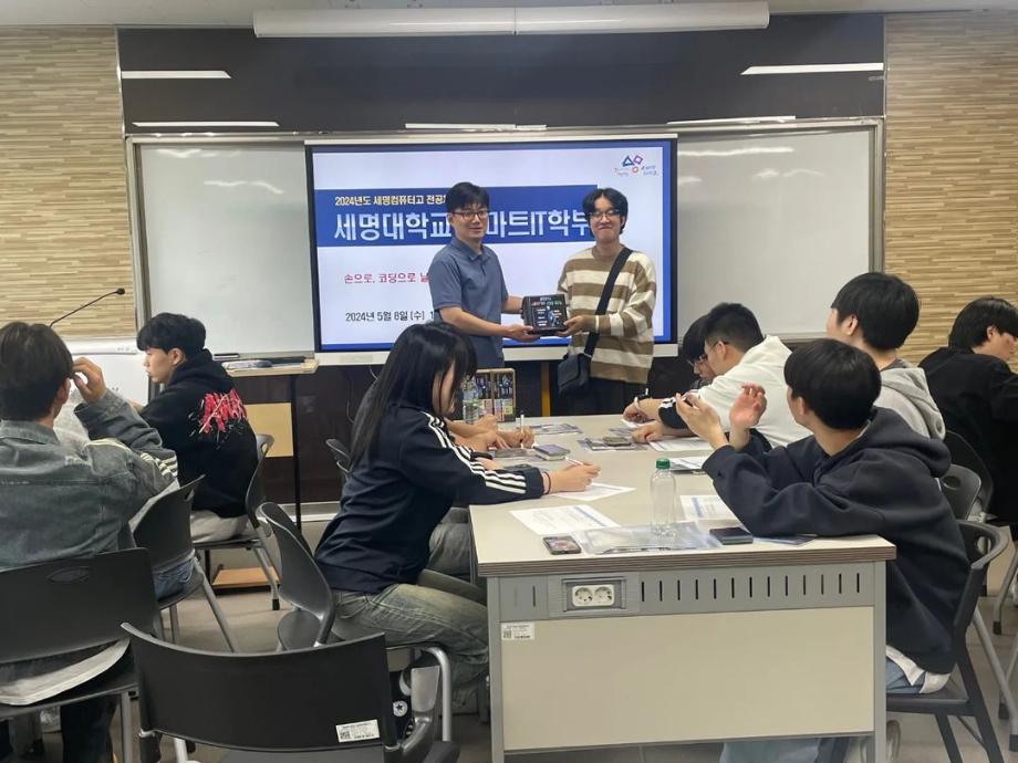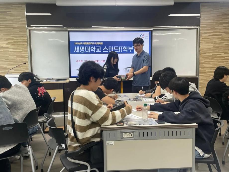 본문 시작 홈으로 SMIT 소식 SMIT 소개 SMIT 교육 SMIT 취업 SMIT 소식 SMIT 입학 홈페이지가이드 갤러리 공지사항 갤러리 경진대회 동아리 갤러리 페이스북 트위터 프린트 세명컴퓨터고등학교 전공 특강 시행 스마트IT학부 2888 2024-05-09 안녕하세요 세명대학교 스마트IT학부입니다🤗 2024년 5월 8일에 세명컴퓨터고등학교 학생들의 전공 체험 활동을 진행하였습니다. 세명대학교의 자매학교인 세명컴퓨터고등학교의 전공 체험 학습을 위해 스마트IT학부는 드론 축구와 드론 레이스를 진행했습니다. 게임의 우승자와 열심히 참여한 학생들에게 드론과 소정의 상품을 증정하였습니다. 목록 이전2024학년도 스마트IT학부 MT 다음 2024 청룡체전 담당부서 : 스마트IT학부 담당자 : - 연락처 : 043-649-1275 최종수정일 : 2024-10-26 만족도조사 만족도 조사 이 페이지에서 제공하는 정보에 대하여 만족하시나요? 매우만족 만족 보통 불만족 매우불만족