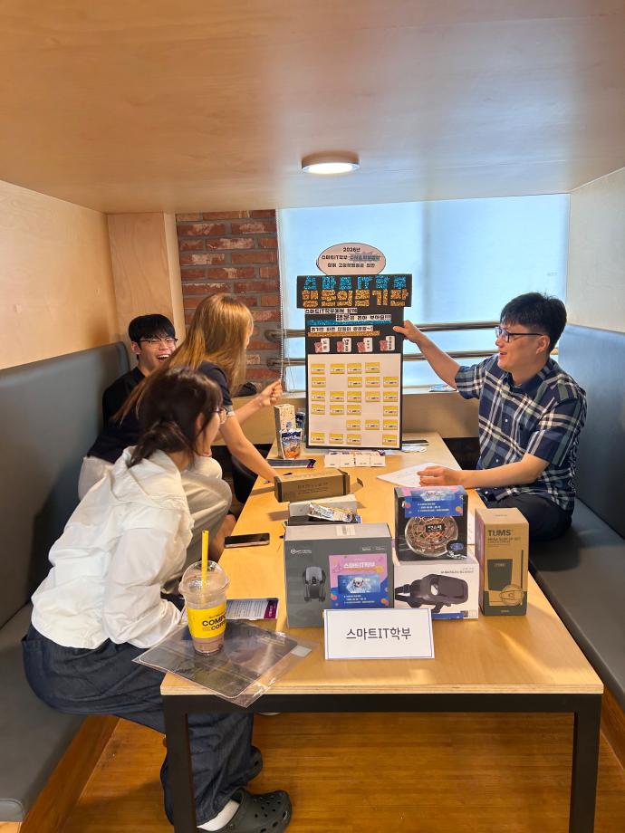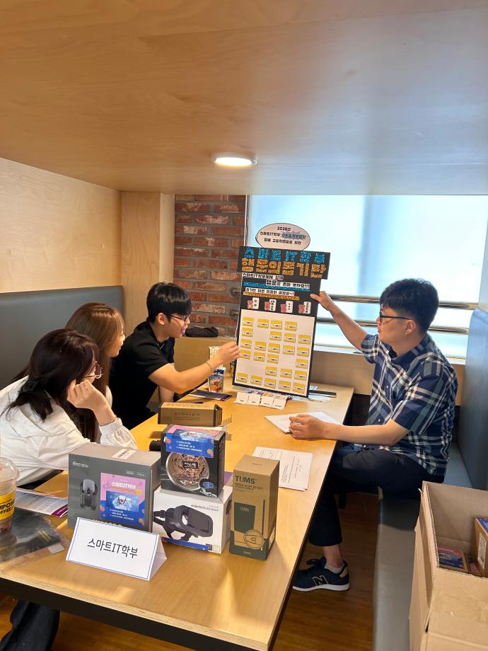 본문 시작 홈으로 SMIT 소식 SMIT 소개 SMIT 교육 SMIT 취업 SMIT 소식 SMIT 입학 홈페이지가이드 갤러리 공지사항 갤러리 경진대회 동아리 갤러리 페이스북 트위터 프린트 2025 세명고등학교 입시박람회 참여 스마트IT학부 1610 2025-07-16 스마트IT학부는 2025.07.15(화) 세명고등학교에서 진행하는 세명고 박람회에 참가하였습니다! 학생들이 자유롭게 입시상담 부스에 방문하여 스마트IT학부 입시 등에 대하여 한상익 교수님과 상담을 진행하였고, 상담을 받은 학생에 한하여 상품 경품 뽑기 참여기회를 주었습니다! 세명고 학생들에게 입시와 취업 전망 등에 대해 설명하는 유익한 시간이었습니다! 목록 이전CHARM인증제를 알려줘!⭐️ 다음 예비군훈련에 참가하는 학생(예비군)의 학업보장 담당부서 : 스마트IT학부 담당자 : - 연락처 : 043-649-1275 최종수정일 : 2024-10-26 만족도조사 만족도 조사 이 페이지에서 제공하는 정보에 대하여 만족하시나요? 매우만족 만족 보통 불만족 매우불만족