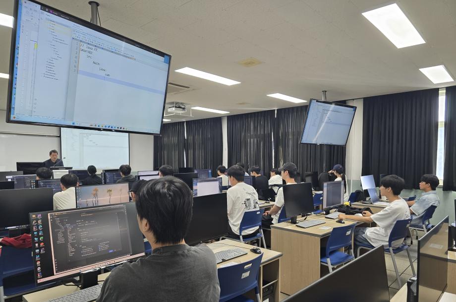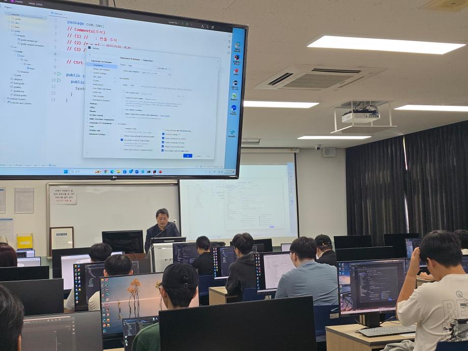 본문 시작 홈으로 SMIT 소식 SMIT 소개 SMIT 교육 SMIT 취업 SMIT 소식 SMIT 입학 홈페이지가이드 갤러리 공지사항 갤러리 경진대회 동아리 갤러리 페이스북 트위터 프린트 스마트IT학부 JAVA언어실습 전공 실습수업 스마트IT학부 1647 2025-09-11 스마트IT학부 JAVA언어실습 전공 실습수업 사진입니다. 모두들 적극적으로 그리고 즐겁게 수업에 참여하고 있습니다. 목록 이전스마트IT학부자료구조알고리즘 전공 수업 다음 2025 청룡체전 담당부서 : 스마트IT학부 담당자 : - 연락처 : 043-649-1275 최종수정일 : 2024-10-26 만족도조사 만족도 조사 이 페이지에서 제공하는 정보에 대하여 만족하시나요? 매우만족 만족 보통 불만족 매우불만족