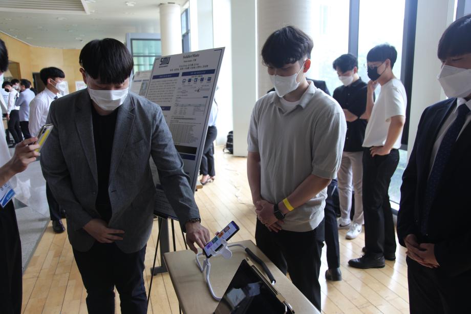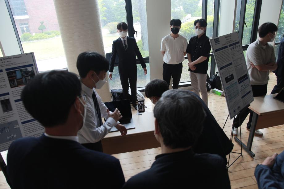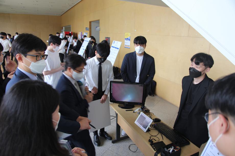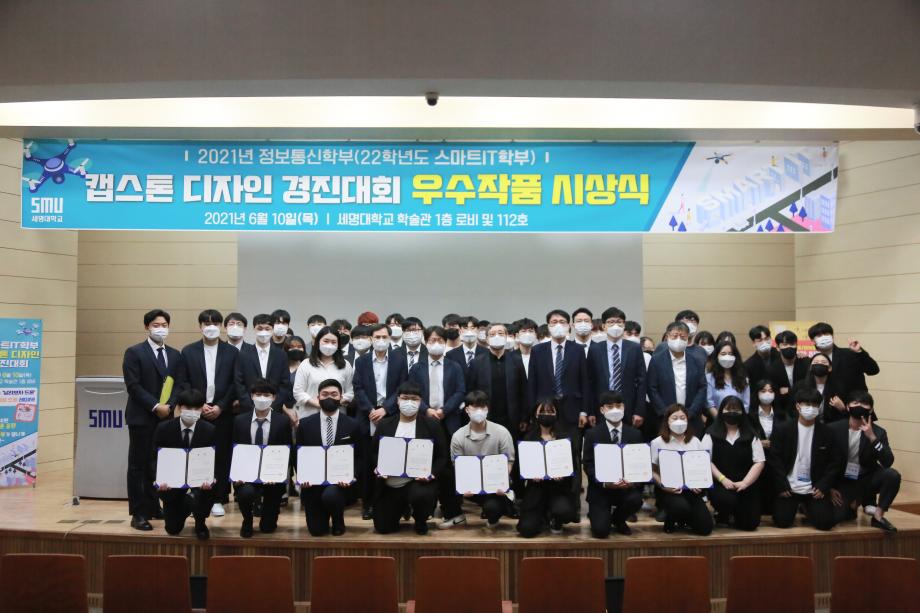 본문 시작 홈으로 SMIT 소식 SMIT 소개 SMIT 교육 SMIT 취업 SMIT 소식 SMIT 입학 홈페이지가이드 갤러리 공지사항 갤러리 경진대회 동아리 갤러리 페이스북 트위터 프린트 2021학년도 스마트IT학부 캡스톤디자인 경진대회 정보통신학부 4619 2021-06-10 2021년 06월 10일 정보통신학부에서는 캡스톤디자인 경진대회를 학술관1층 로비에서 진행하였습니다. 4학년 재학생들이 4년동안 학습한 지식의 미무리 단계로서 1년 동안 준비한 작품을 교수님들께 설명과 함께 시연하고 교수님들의 평가 후 우수작품을 선정하여 학술관112호에서 시상하였다. 캡스톤디자인 결과발표회를 통해서 재학생들은 산업현장에서 진행해야 하는 프로젝트 업무를 간접적으로 느낄 수 있는 뜻 깊은 자리 였습니다. 목록 이전스마트IT학부 홍보팀 “스마트하랑”발대식 다음 2022학년도 스마트IT학부 리플렛 담당부서 : 스마트IT학부 담당자 : - 연락처 : 043-649-1275 최종수정일 : 2024-10-26 만족도조사 만족도 조사 이 페이지에서 제공하는 정보에 대하여 만족하시나요? 매우만족 만족 보통 불만족 매우불만족