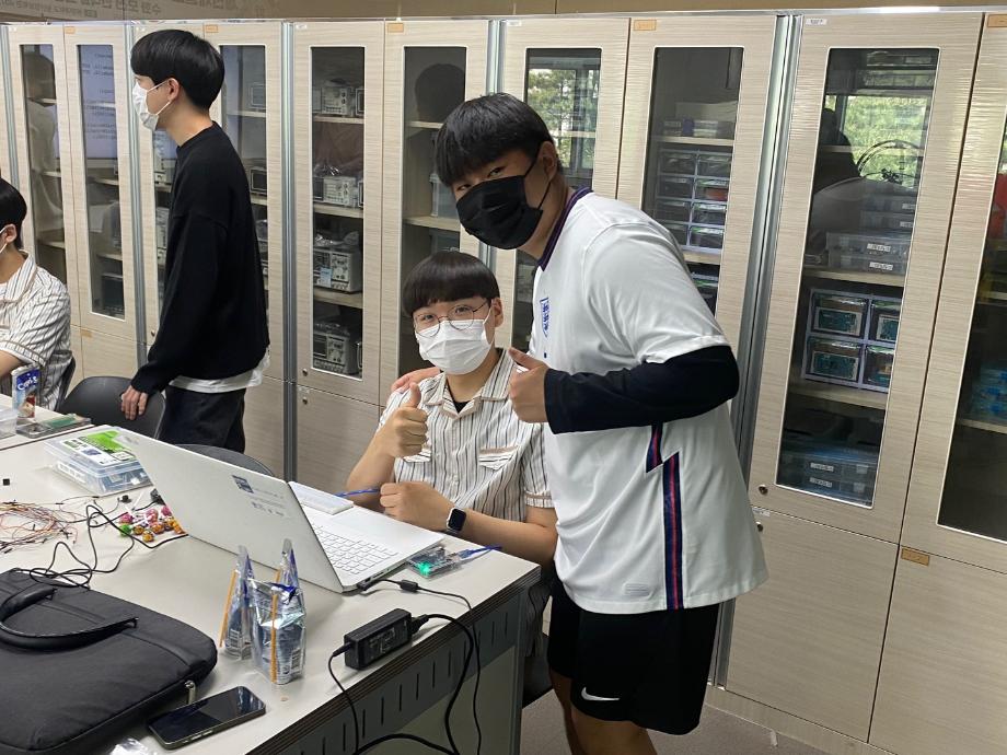 또한 스마트IT학부 전공기초 실습인 아두이노를 이용한 LED 및 음성제어 관련 코딩을 체험하는 실습 체험과 질의응답 시간과 학부 기념품 증정 및 단체 사진 촬영을 진행하였다.
