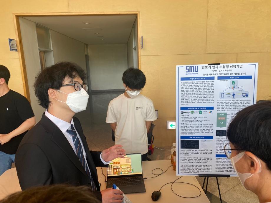 스마트IT학부는 6월2일(목) 오후1시부터, 학술관 로비와 제1컨퍼런스홀에서 4학년 재학생 58명이 지난 1년 동안 땀 흘려 개발한 스마트IT 분야의 16개 작품 전시 및 우수작 선발을 위한 [23회 캡스톤디자인 경진대회] 를 진행하였다. 인근 고교생, 재학생과 교수 120여명이 참여하여, 학부홍보를 위한 스마트 쳇봇, 수화를 인식하는 모션 인식, 드론관련 컨텐츠개발과 수집형상담 게임과 애완동물 돌봄 어플등 16개 작품들에 대한 작품 설명, 평가와 우수 작품 시상식으로 진행 되었다.