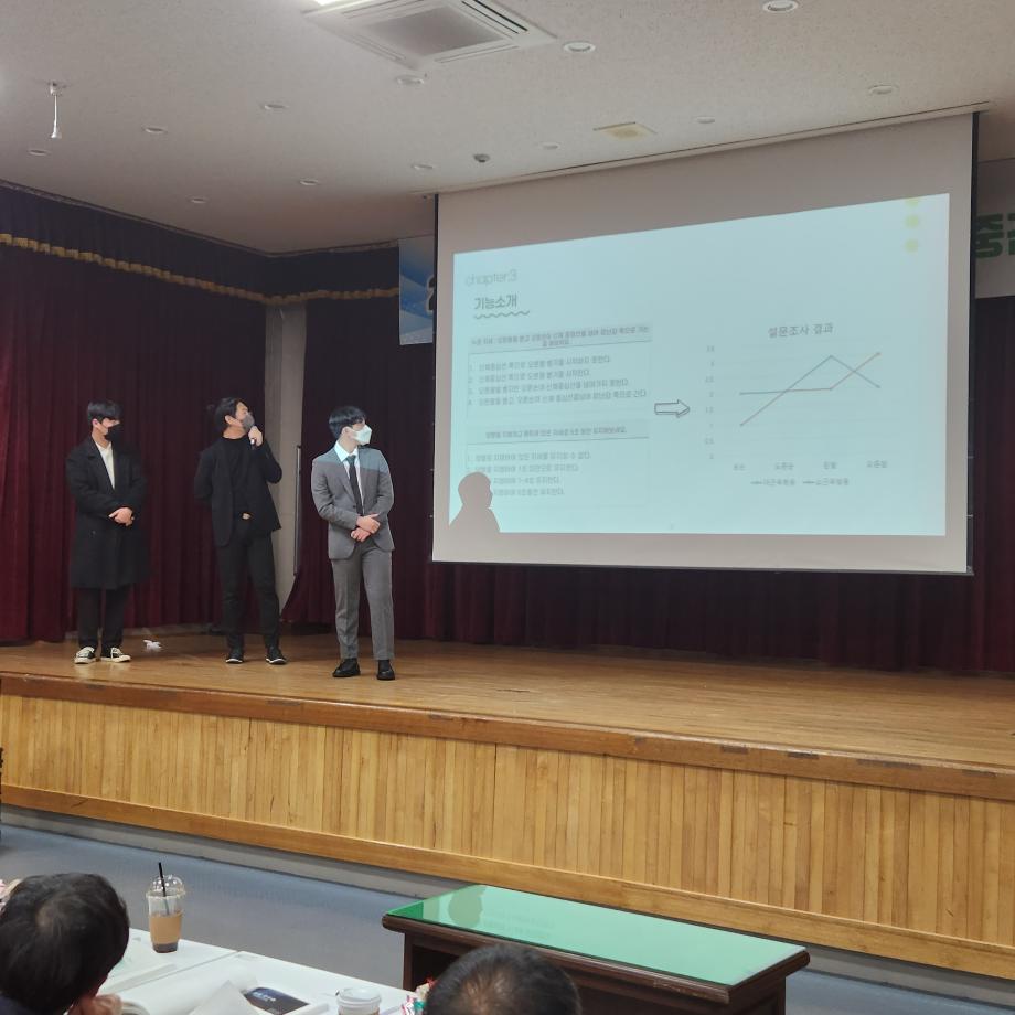 민송도서관 시청각실에서 3학년 15개 팀이 참가하였으며, 1,2,4학년 재학생들과 교수님들 앞에서 진행 되었다.