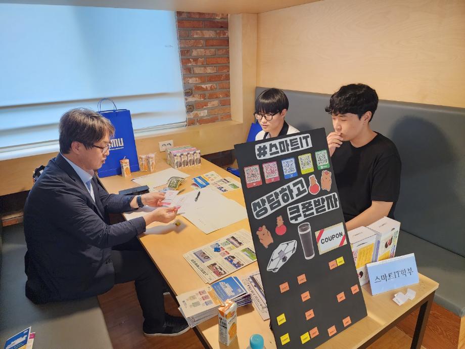 본문 시작 홈으로 SMIT 소식 SMIT 소개 SMIT 교육 SMIT 취업 SMIT 소식 SMIT 입학 홈페이지가이드 갤러리 공지사항 갤러리 경진대회 동아리 갤러리 페이스북 트위터 프린트 세명고등학교 입시박람회 시행 스마트IT학부 5229 2023-07-17 스마트IT학부는 2023.07.13(목) 세명고등학교에서 진행하는 세명고 박람회에 참가하였다. 학생들이 자유롭게 입시상담 부스에 방문하여 스마트IT학부 입시 등에 대하여 조면균 교수님과 상담을 하였다. 상담을 받은 학생에 한하여 상품 경품을 진행하였다. 세명고 학생들에게 입시와 취업 전망 등에 대해 설명하는 유익한 시간이었다. 목록 이전스마트IT학부 제천제일고 내비게이션 특강 시행 다음 한상익 교수님 '산학협력단 감사의 글' 수여 담당부서 : 스마트IT학부 담당자 : - 연락처 : 043-649-1275 최종수정일 : 2024-10-26 만족도조사 만족도 조사 이 페이지에서 제공하는 정보에 대하여 만족하시나요? 매우만족 만족 보통 불만족 매우불만족