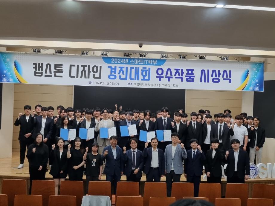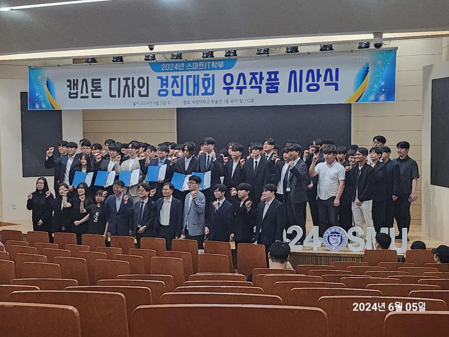 본문 시작 홈으로 SMIT 소식 SMIT 소개 SMIT 교육 SMIT 취업 SMIT 소식 SMIT 입학 홈페이지가이드 갤러리 공지사항 갤러리 경진대회 동아리 갤러리 페이스북 트위터 프린트 2024학년도 졸업작품 전시회 개최 스마트IT학부 2855 2024-06-07 안녕하세요 세명대학교 스마트IT학부입니다🙂 2024년 6월 5일에 스마트IT학부 캡스톤 디자인 경진대회를 진행하였습니다! 이번 발표회와 시상식이 더 넓은 세계로 나아가기 위한 발딛음이 되었으면 하는 바람으로 4학년 분들, 긴 시간동안 정말 고생 많으셨습니다😊 캡스톤 디자인 경진대회 진행을 도와주신 교수님들께도 감사인사 전합니다. #제천 #세명대 #세명대학교 #IT #캡스톤 #디자인 #발표회 #시상식 #졸업작품 목록 이전제천제일고 전공체험활동!! 다음 세명대학교 꿈 실현 장학금 신청 안내 담당부서 : 스마트IT학부 담당자 : - 연락처 : 043-649-1275 최종수정일 : 2024-10-26 만족도조사 만족도 조사 이 페이지에서 제공하는 정보에 대하여 만족하시나요? 매우만족 만족 보통 불만족 매우불만족