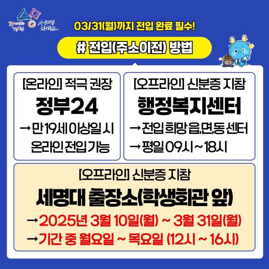 ▶ 제천시 주소이전 기간 : 2025.03.31(월) 까지