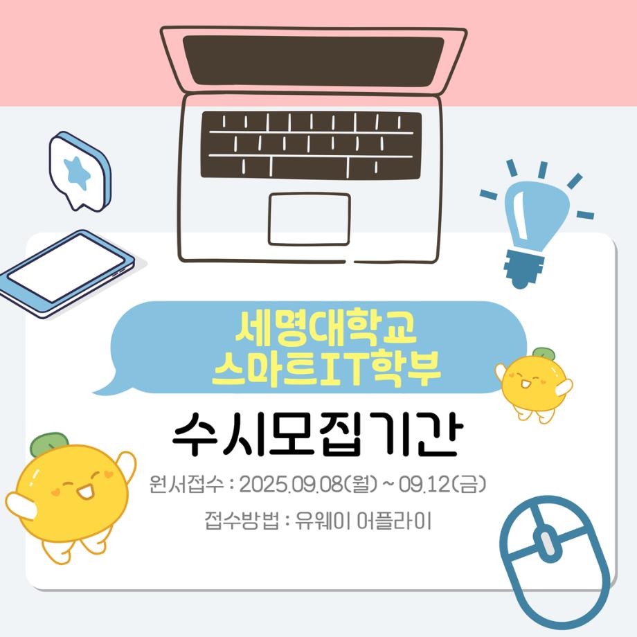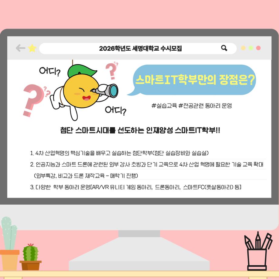 본문 시작 홈으로 SMIT 소식 SMIT 소개 SMIT 교육 SMIT 취업 SMIT 소식 SMIT 입학 홈페이지가이드 갤러리 공지사항 갤러리 경진대회 동아리 갤러리 페이스북 트위터 프린트 ◈ 스마트IT학부의 모든것🎶 ◈ 스마트IT학부 1748 2025-08-12 📢 스마트IT학부의 모든것!! - 내가알려줄게 🎉🎉 #세명대학교 #스마트IT학부 #드론 #카드뉴스 목록 이전2025 스마트IT학부 일보 다음 2024-후기 대학원 박사 학위수여식 담당부서 : 스마트IT학부 담당자 : - 연락처 : 043-649-1275 최종수정일 : 2024-10-26 만족도조사 만족도 조사 이 페이지에서 제공하는 정보에 대하여 만족하시나요? 매우만족 만족 보통 불만족 매우불만족