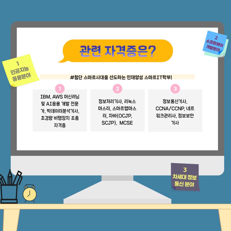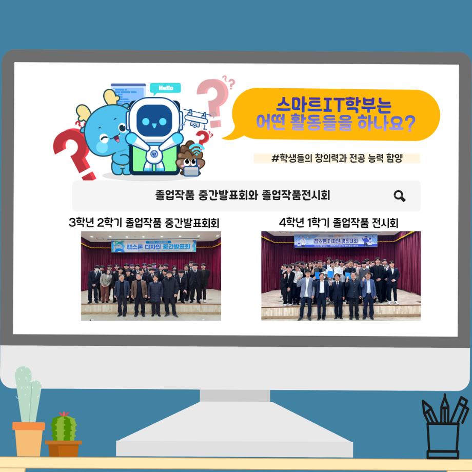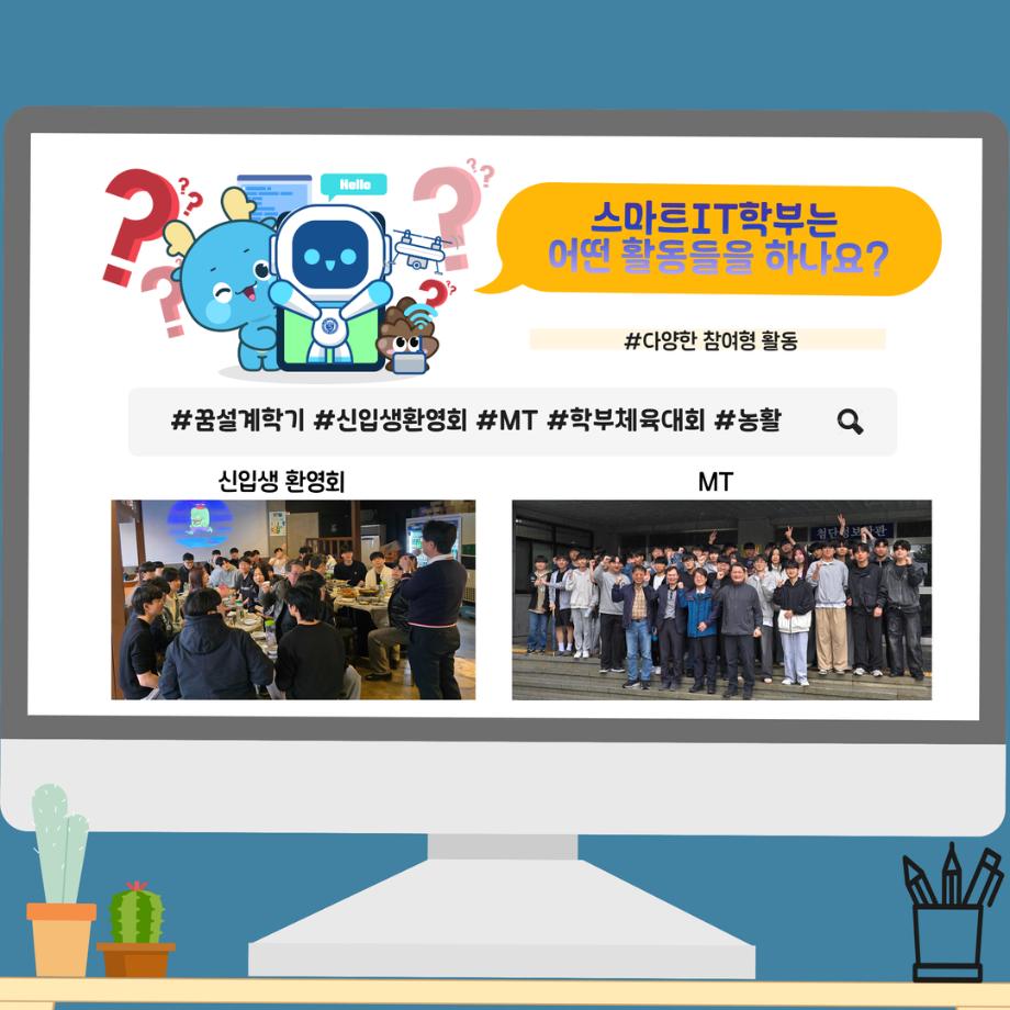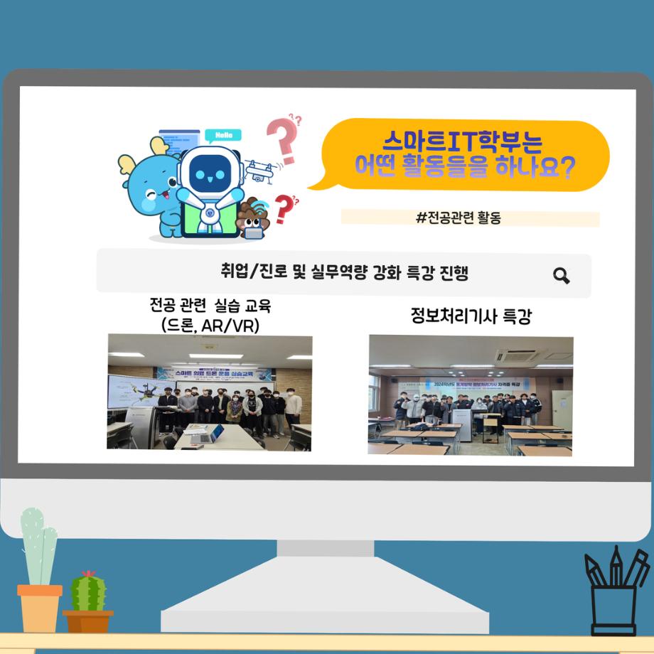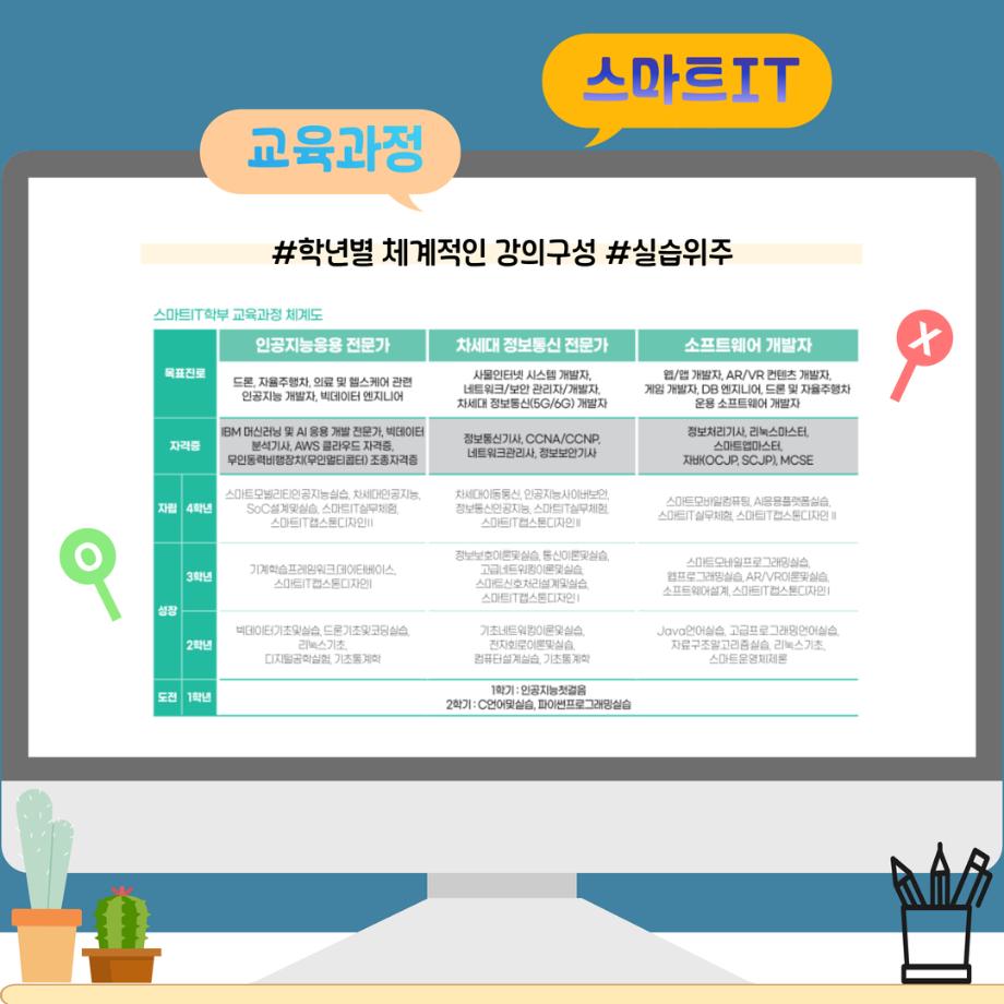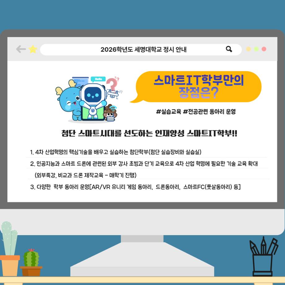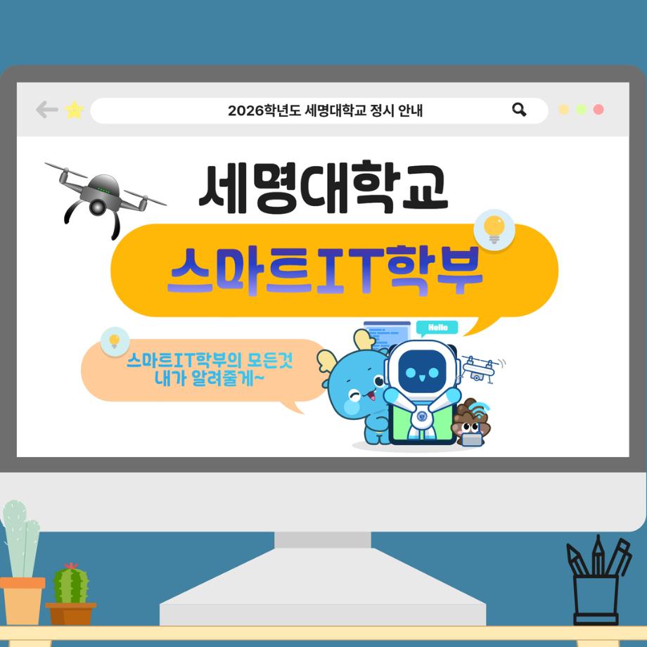 본문 시작 홈으로 SMIT 소식 SMIT 소개 SMIT 교육 SMIT 취업 SMIT 소식 SMIT 입학 홈페이지가이드 갤러리 공지사항 갤러리 경진대회 동아리 갤러리 페이스북 트위터 프린트 📢2026 정시모집 + 스마트IT학부의 각종활동📢 스마트IT학부 923 2025-12-30 📢2026 정시모집 + 스마트IT학부의 각종활동📢 목록 이전2026 정시모집 안내 다음 (축) 신규 임용 신용제 교수 담당부서 : 스마트IT학부 담당자 : - 연락처 : 043-649-1275 최종수정일 : 2024-10-26 만족도조사 만족도 조사 이 페이지에서 제공하는 정보에 대하여 만족하시나요? 매우만족 만족 보통 불만족 매우불만족