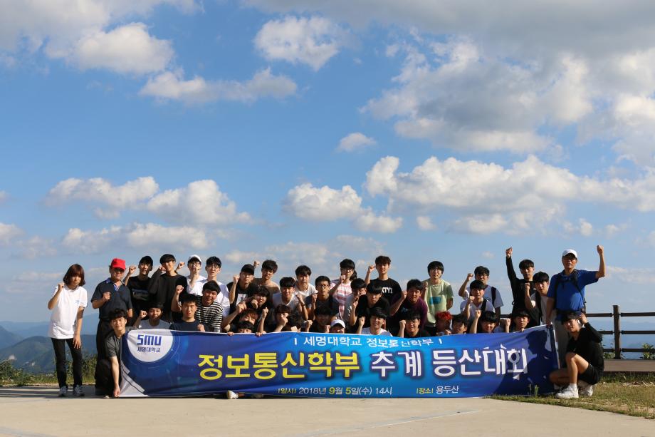 본문 시작 홈으로 SMIT 소식 SMIT 소개 SMIT 교육 SMIT 취업 SMIT 소식 SMIT 입학 홈페이지가이드 갤러리 공지사항 갤러리 경진대회 동아리 갤러리 페이스북 트위터 프린트 2018학년도 정보통신학부 용두산 등산 정보통신학부 7406 2018-09-27 정보통신학부에서는 2018년 09월 05일 18학번 신입생들을 대상으로 용두산 등산을 실시하였다. 이날 참가한 신입생들은 즐거운 마음으로 산행하면서 용두산의 아름다움을 체험할 수 있었다. 이번 용두산 등산을 계기로 신입생들의 유대감이 더욱 더 향상 되었고 몸과 마음을 단련할 수 있는 좋은 계기가 되었다. 목록 이전2017학년도 후기 학위수여식 개최 다음 2018학년도 IT엔지니어링대학 임직원 취업특강 담당부서 : 스마트IT학부 담당자 : - 연락처 : 043-649-1275 최종수정일 : 2024-10-26 만족도조사 만족도 조사 이 페이지에서 제공하는 정보에 대하여 만족하시나요? 매우만족 만족 보통 불만족 매우불만족