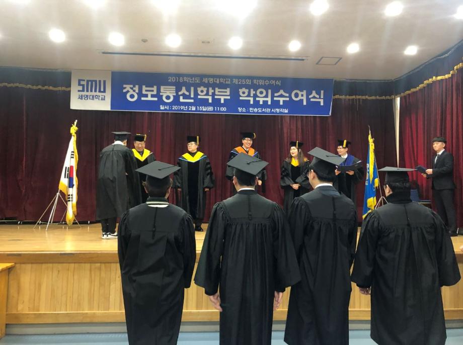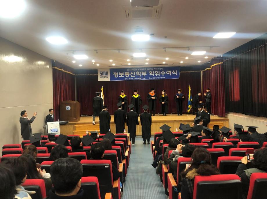 본문 시작 홈으로 SMIT 소식 SMIT 소개 SMIT 교육 SMIT 취업 SMIT 소식 SMIT 입학 홈페이지가이드 갤러리 공지사항 갤러리 경진대회 동아리 갤러리 페이스북 트위터 프린트 2018학년도 전기 학위수여식 정보통신학부 6492 2019-02-20 정보통신학부에서는 02월 15일(금) 민송도서관 시청각실에서 2018학년도 전기 학위수여식을 개최하였다. 정보통신학부에서 총 54명의 졸업생이 학위를 수여받았으며 학부수석 1명, 공로상 2명의 학생들이 상장을 받았다. 이용걸 총장은 축사에서 졸업생에게 “진정한 지성인으로 거듭난 졸업생들이 세상을 밝게 비추는 위세광명의 인재로 활약하게 될 날을 기대한다”며 “졸업생들의 앞날에 무궁한 축복과 발전이 있기를 기원한다”고 전했다. 목록 이전2018학년도 동계방학 중 정보처리기사 자격증 특강 진행 다음 2019학년도 정보통신학부 신입생 '꿈 설계학기' 담당부서 : 스마트IT학부 담당자 : - 연락처 : 043-649-1275 최종수정일 : 2024-10-26 만족도조사 만족도 조사 이 페이지에서 제공하는 정보에 대하여 만족하시나요? 매우만족 만족 보통 불만족 매우불만족