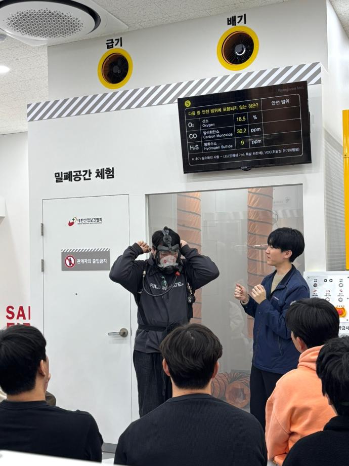 본문 시작 홈으로 커뮤니티 학과소개 진로 및 취업 교수소개 학과과정 커뮤니티 홈페이지가이드 포토갤러리 학과공지 학사일정 포토갤러리 학생회 학과영상 보건안전학과 인스타 보건안전학과 블로그 포토갤러리 페이스북 트위터 프린트 보건안전학과 전공관련 현장견학 보건안전학과 1082 2025-11-07 2025.11.03.(월) 보건안전학과 3학년 학생들이 청주 대한산업보건협회본부에 방문하여 교육실습을 받았습니다. 전공으로 교육받았던 내용을 실제 실습함으로써 산업환기 기초설계, 공기정화장치 및 환기장치 안전검사를 통해 해당 직무에 대한 지식을 습득할 수 있던 유익한 시간이었습니다. 목록 이전임원특강: 대한산업보건협회 정문생 국장님 다음 보건안전학과 한국설비안전학회 학술대회 대상 수상 담당부서 : 보건안전학과 담당자 : - 연락처 : 043-649-1777 최종수정일 : 2024-10-26 만족도조사 만족도 조사 이 페이지에서 제공하는 정보에 대하여 만족하시나요? 매우만족 만족 보통 불만족 매우불만족