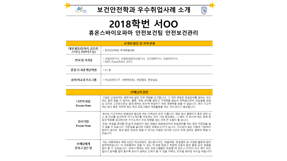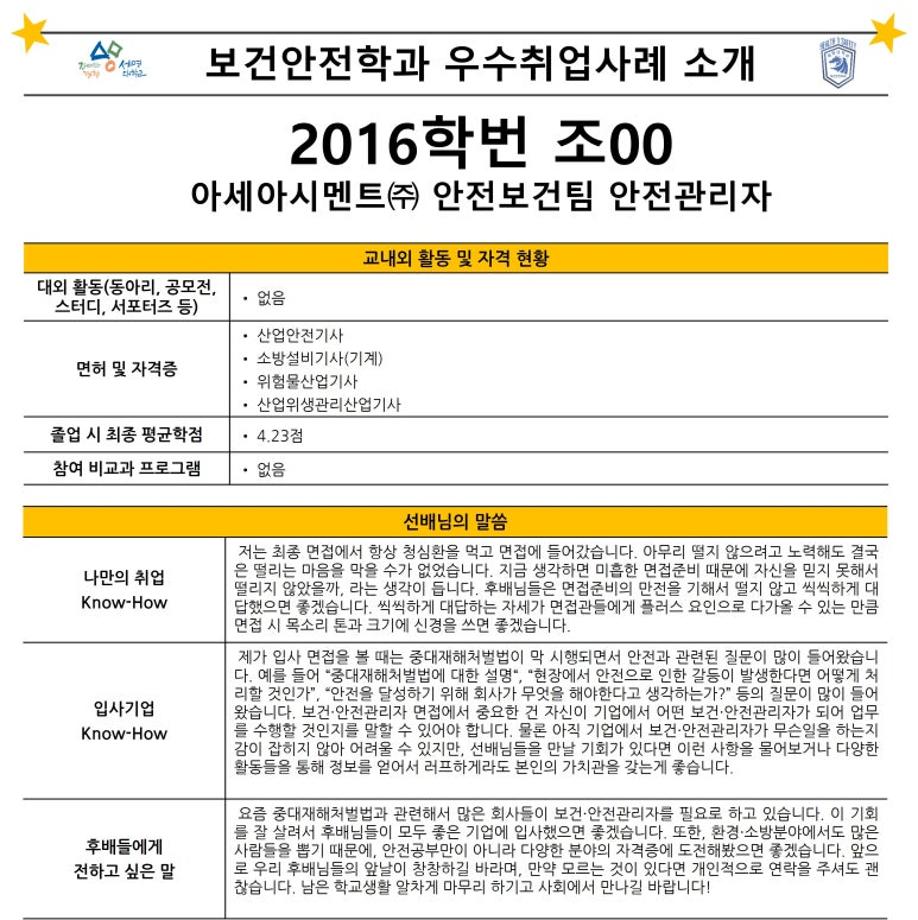 본문 시작 홈으로 커뮤니티 학과소개 진로 및 취업 교수소개 학과과정 커뮤니티 홈페이지가이드 포토갤러리 학과공지 학사일정 포토갤러리 학생회 학과영상 보건안전학과 인스타 보건안전학과 블로그 포토갤러리 페이스북 트위터 프린트 보건안전학과 우수취업사례 보건안전학과 2720 2024-09-09 보건안전학과 우수취업사례 목록 이전제6회 현장실습 우수사례 수기 공모전 학과 학생 수상 다음 한국설비안전학회 우수논문상 담당부서 : 보건안전학과 담당자 : - 연락처 : 043-649-1777 최종수정일 : 2024-10-26 만족도조사 만족도 조사 이 페이지에서 제공하는 정보에 대하여 만족하시나요? 매우만족 만족 보통 불만족 매우불만족