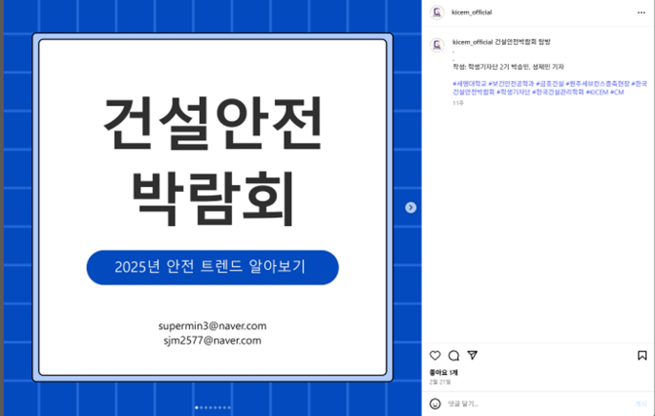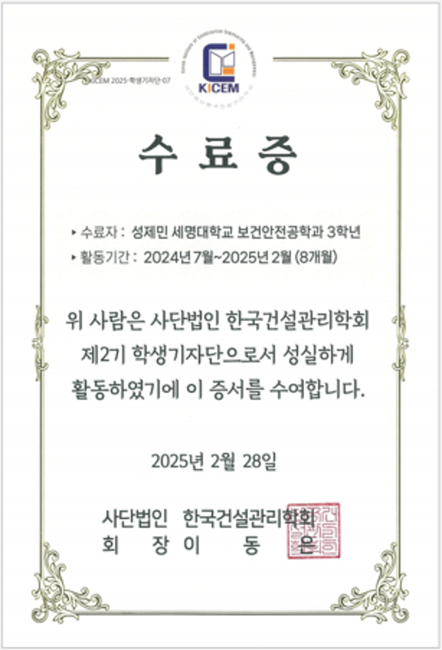 활동명: 사단법인 한국건설관리학회 학생기자단(2기)