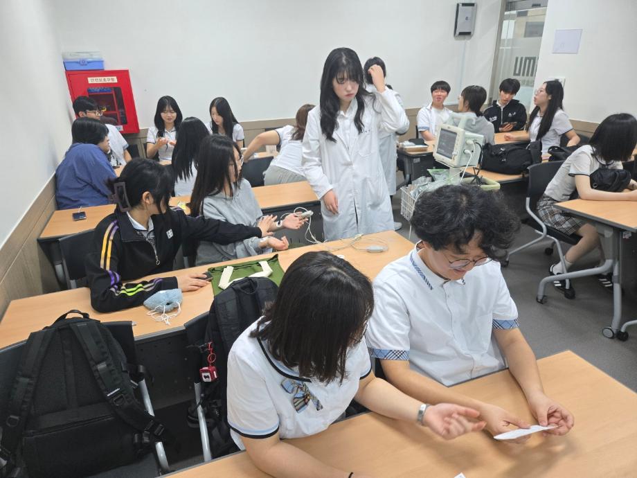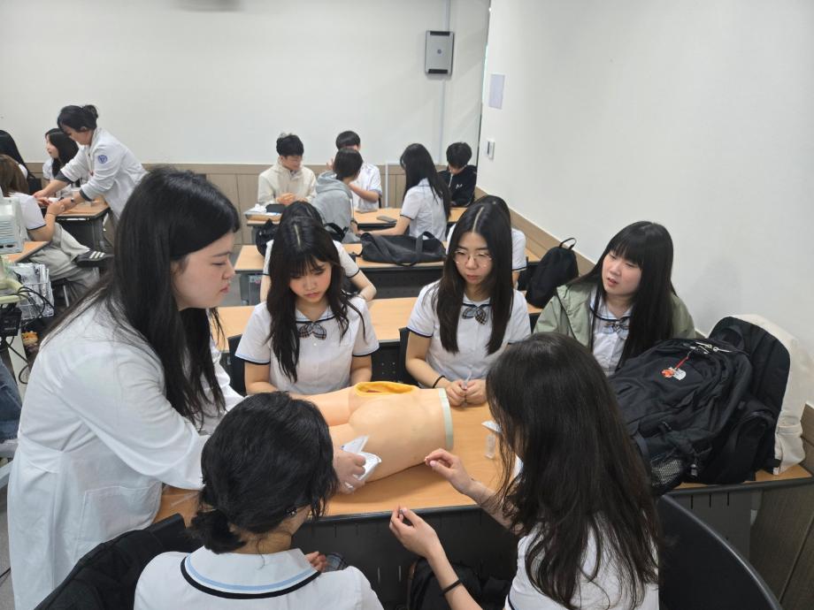 본문 시작 홈으로 커뮤니티 학과소개 교수소개 교육과정 학과소식 학과특성화 사업 커뮤니티 홈페이지가이드 포토갤러리 학사일정 포토갤러리 학생회 학과동아리 학과 취업정보 동창회 학과운영개선의견 발전기금 포토갤러리 페이스북 트위터 프린트 세명대학교 간호학과 전공 체험 프로그램_제천제일고등학교 간호학과 2417 2025-05-26 2025년 5월 20일(화), 제천제일고등학교 학생들이 미래의 간호사를 꿈꾸며 설레는 발걸음으로 세명대를 방문하였습니다. 시뮬레이션센터에서 진행된 전공 소개, 실습실에서의 근육주사, 혈당측정, 심전도 실습 체험까지 짧은 시간이었지만 많은 것을 배우고 느낄 수 있었던 소중한 시간이 되었기를 바랍니다. 오늘의 체험이 여러분의 진로를 한걸음 더 구체적으로 그려보는 계기가 되었기를 진심으로 응원합니다. 목록 이전세명대학교 간호학과, KOICA 민관협력 인큐베이팅 프로그램(아카데미 파트너), 몽골 울란바토르 현지 지역조사 성료 다음 29대 학생회 [파도] 기말고사 응원 간식 나눔 담당부서 : 간호학과 담당자 : - 연락처 : 043-649-1357 최종수정일 : 2024-10-26 만족도조사 만족도 조사 이 페이지에서 제공하는 정보에 대하여 만족하시나요? 매우만족 만족 보통 불만족 매우불만족