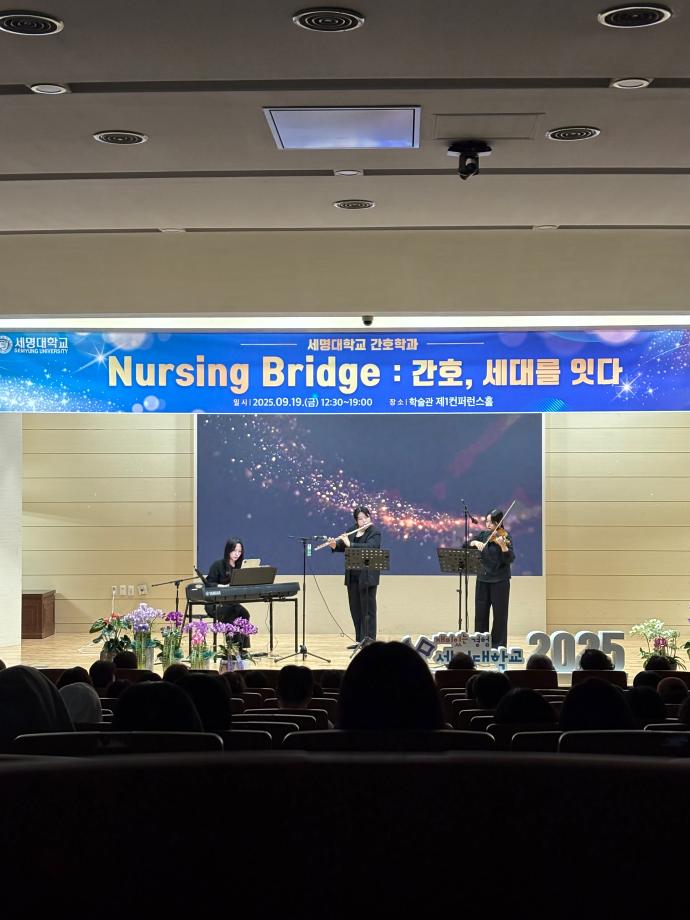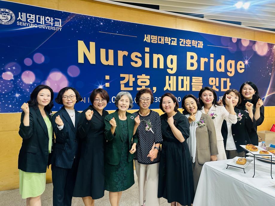 본문 시작 홈으로 커뮤니티 학과소개 교수소개 교육과정 학과소식 학과특성화 사업 커뮤니티 홈페이지가이드 포토갤러리 학사일정 포토갤러리 학생회 학과동아리 학과 취업정보 동창회 학과운영개선의견 발전기금 포토갤러리 페이스북 트위터 프린트 🎉 세명대학교 간호학과 30주년 기념행사 🎉 Nursing Bridge: 간호, 세대를 잇다 간호학과 1928 2025-09-24 이번 행사에는 신경림 대한간호협회장님의 기조강연과 정승교 명예교수님의 특별강연이 있었습니다. 권동현 총장님을 비롯한 각 부처 처장님, 명지병원 병원장님, 간호부장님 등 여러 기관에서도 직접 참여해주시고, 축하영상 및 화환을 보내주시어 자리가 더욱 빛났습니다. 1기 졸업생부터 현 재학생까지 500여명이 한뜻으로 모여 뜻깊은 시간을 보냈습니다. 과거와 현재, 그리고 미래의 간호를 잇는 ‘Nursing Bridge’ 그 감동의 순간들입니다. 목록 이전🎓 [2025학년도 핵심간호술 졸업인증제 – 선배님들의 모교 방문] 다음 2025년 2학기 간호학과 교학간담회 담당부서 : 간호학과 담당자 : - 연락처 : 043-649-1357 최종수정일 : 2024-10-26 만족도조사 만족도 조사 이 페이지에서 제공하는 정보에 대하여 만족하시나요? 매우만족 만족 보통 불만족 매우불만족