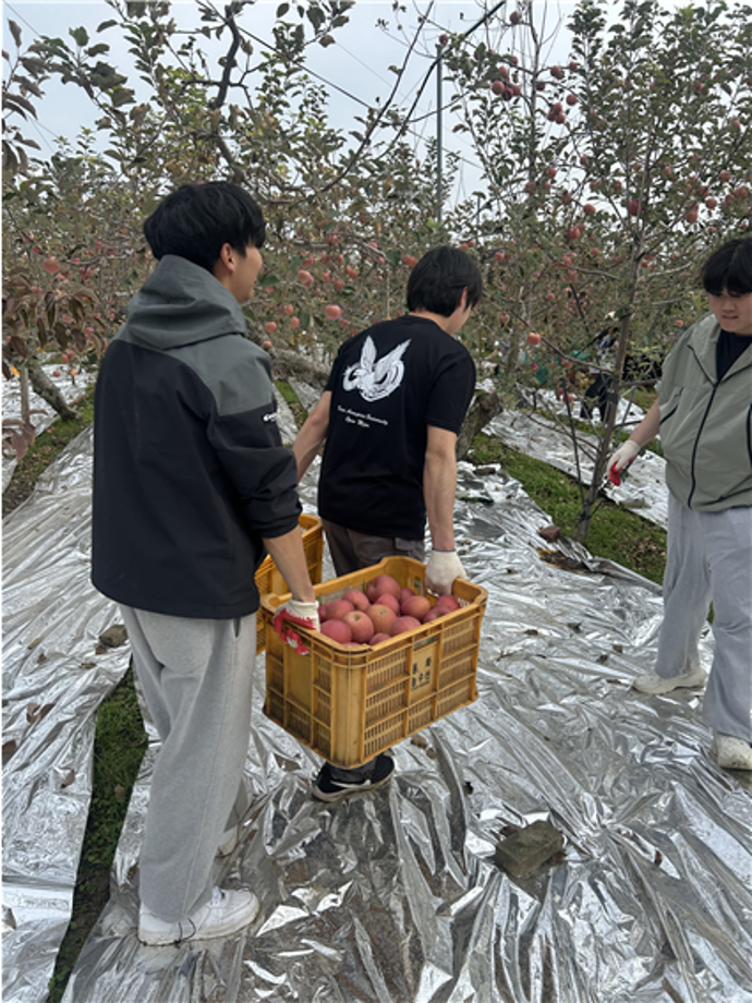 본문 시작 홈으로 커뮤니티 학과소개 교수소개 교육과정 학과소식 학과특성화 사업 커뮤니티 홈페이지가이드 포토갤러리 학사일정 포토갤러리 학생회 학과동아리 학과 취업정보 동창회 학과운영개선의견 발전기금 포토갤러리 페이스북 트위터 프린트 세명대학교 간호학과, 농촌 일손돕기 봉사활동 🍎 간호학과 2097 2025-11-11 세명대학교 간호학과 1학년 학생들은 11월 8일, 제천 지역 사과 농가를 찾아 농촌 일손돕기 봉사활동을 진행하였습니다. 학생들은 사과 수확을 도우며 농민들의 노고를 이해하고, 지역사회와 함께하는 나눔의 의미를 되새겼습니다. 이번 봉사활동을 통해 간호학과 학생들은 더불어 사는 공동체의 가치를 배우고 따뜻한 마음을 실천하는 시간을 가졌습니다. 목록 이전포항 동지여고 간호학과 전공체험 다음 세명대학교 간호학과 제30회 나이팅게일 선서식 🕯️ 담당부서 : 간호학과 담당자 : - 연락처 : 043-649-1357 최종수정일 : 2024-10-26 만족도조사 만족도 조사 이 페이지에서 제공하는 정보에 대하여 만족하시나요? 매우만족 만족 보통 불만족 매우불만족