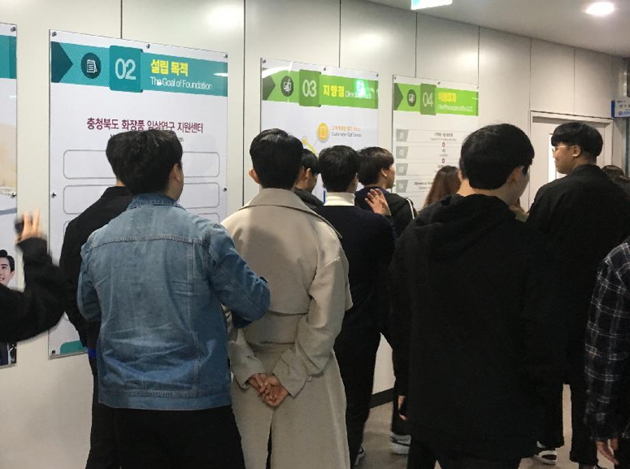 본문 시작 홈으로 커뮤니티 학과소개 학과과정 대학원 커뮤니티 연구동아리 홈페이지가이드 포토갤러리 학과공지 채용정보 학과일정 포토갤러리 유튜브 인스타그램 취업현황 학생회 조직도 졸업생 숏터뷰 포토갤러리 페이스북 트위터 프린트 2018 오송화장품뷰티산업 엑스포 참가 화장품뷰티생명공학부 8081 2018-10-24 작년에 이어 올해도 1,3학년 학생들과 오송화장품뷰티산업 엑스포에 참가하였습니다. 학생들 각자 피부 진단도 받아보고 다양한 화장품 샘플들을 경험하며 즐거운 시간을 가졌습니다. 충청북도화장품임상연구지원센터에도 들려 센터도 돌아보며 취업 목표의식 다지는 시간이었습니다 목록 이전제천중학교 중등교육 연계프로그램(전공체험) 이전의림여중 중등교육 연계프로그램(전공체험) 담당부서 : 바이오코스메틱학과 담당자 : - 연락처 : 043-649-1638 최종수정일 : 2024-10-26 만족도조사 만족도 조사 이 페이지에서 제공하는 정보에 대하여 만족하시나요? 매우만족 만족 보통 불만족 매우불만족