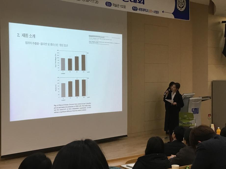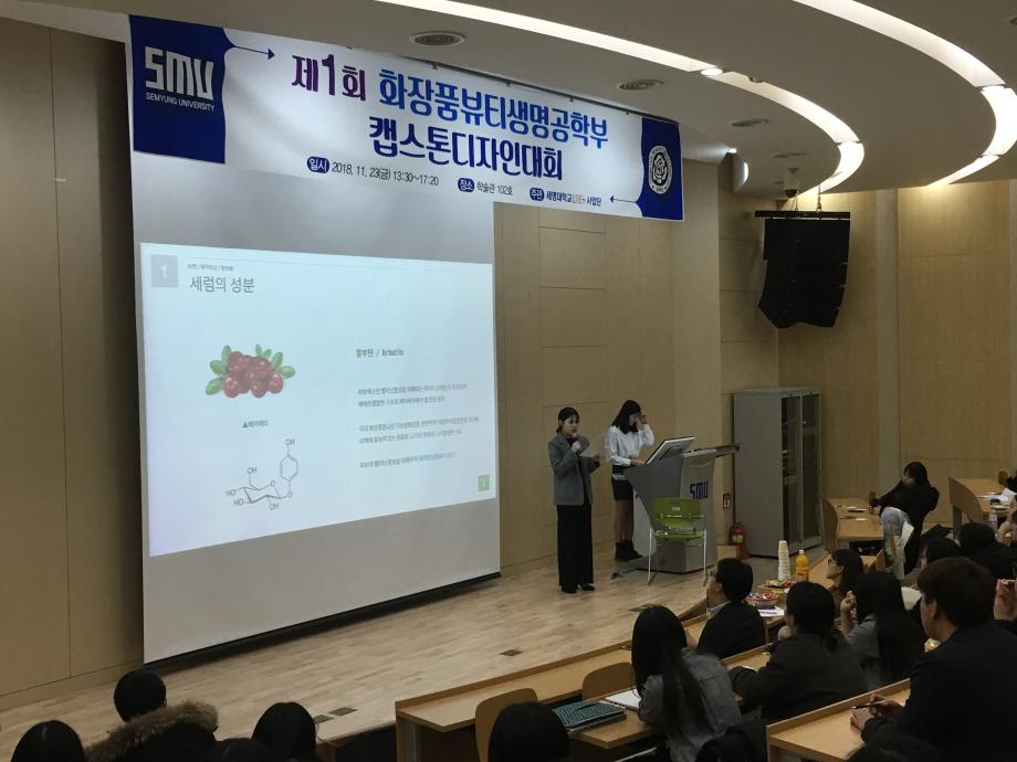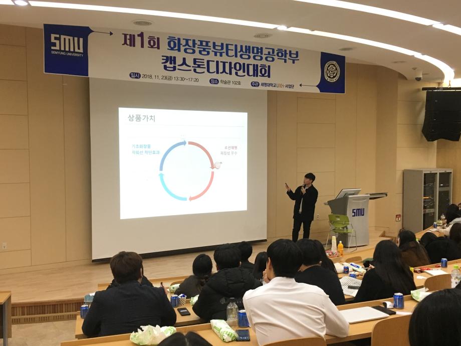 본문 시작 홈으로 커뮤니티 학과소개 학과과정 대학원 커뮤니티 연구동아리 홈페이지가이드 포토갤러리 학과공지 채용정보 학과일정 포토갤러리 유튜브 인스타그램 취업현황 학생회 조직도 졸업생 숏터뷰 포토갤러리 페이스북 트위터 프린트 제1회 화장품뷰티생명공학부 캡스톤 디자인 대회 화장품뷰티생명공학부 7468 2018-12-04 지난 11월 23일 학술관 102호에서 장혜인 교수님의 지도하에 제1회 캡스톤디자인 대회가 열렸습니다. 총 17개 조가 참가하여 다양한 화장품에 대한 아이디어를 발표하였고 항목별로 평가하는 시간을 가졌습니다. 발표하는 학생뿐만 아니라 평가를 하는 학생들도 질문과 답변을 주고 받으며 열의가 돋보이는 발표시간이었습니다. 목록 이전제4회 국내 화장품전문가 초청 세미나 다음 2018 동계 LINC+ 바이오산업품질관리학 학술 특강 담당부서 : 바이오코스메틱학과 담당자 : - 연락처 : 043-649-1638 최종수정일 : 2024-10-26 만족도조사 만족도 조사 이 페이지에서 제공하는 정보에 대하여 만족하시나요? 매우만족 만족 보통 불만족 매우불만족