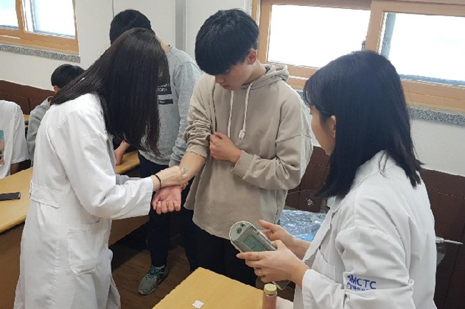 본문 시작 홈으로 커뮤니티 학과소개 학과과정 대학원 커뮤니티 연구동아리 홈페이지가이드 포토갤러리 학과공지 채용정보 학과일정 포토갤러리 유튜브 인스타그램 취업현황 학생회 조직도 졸업생 숏터뷰 포토갤러리 페이스북 트위터 프린트 충주 대원고등학교 중등연계 프로그램 화장품뷰티생명공학부 7098 2019-05-03 충주 대원고등학교에서 중등교육연계프로그램으로 세명대학교 화장품뷰티생명공학부를 방문했습니다. 화장품뷰티생명공학부 전공체험을 희망한 학생은 35명이었습니다. 우리 학부의 김용민 교수님께서 진행하에 IC센터에서 화장품임상시험 실습시간을 가졌고, 학부 및 교수님을 소개하는 시간도 가졌습니다. 오늘 실습한 내용은 [내 피부색 측정하기], [자외선차단제는 진짜 자외선을 차단하는가?] 등으로 대원고 학생들이 흥미로워하며 실습에 참여하였습니다. 목록 이전2019-1 성적우수장학생의 공부비법 특강 다음 의림여자중학교 중등연계 프로그램 시행 담당부서 : 바이오코스메틱학과 담당자 : - 연락처 : 043-649-1638 최종수정일 : 2024-10-26 만족도조사 만족도 조사 이 페이지에서 제공하는 정보에 대하여 만족하시나요? 매우만족 만족 보통 불만족 매우불만족