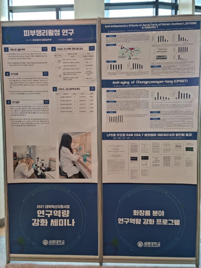본문 시작 홈으로 커뮤니티 학과소개 학과과정 대학원 커뮤니티 연구동아리 홈페이지가이드 포토갤러리 학과공지 채용정보 학과일정 포토갤러리 유튜브 인스타그램 취업현황 학생회 조직도 졸업생 숏터뷰 포토갤러리 페이스북 트위터 프린트 2021 대학혁신지원사업 연구역량 강화 프로그램 포스터 게시 화장품뷰티학부 3566 2021-12-02 학술관 1층 로비에 화장품분야 관련 연구역량강화 포스터가 게재되었습니다 :) 학부 관련 동아리에 관한 내용도 게재 되어있으니 자유롭게 방문하셔서 구경하고 가세요~ 목록 이전2021학년도 대학혁신지원사업 연구역량 강화 세미나 다음 2021학년도 캡스톤디자인 경진대회 입상_단오 팀 담당부서 : 바이오코스메틱학과 담당자 : - 연락처 : 043-649-1638 최종수정일 : 2024-10-26 만족도조사 만족도 조사 이 페이지에서 제공하는 정보에 대하여 만족하시나요? 매우만족 만족 보통 불만족 매우불만족