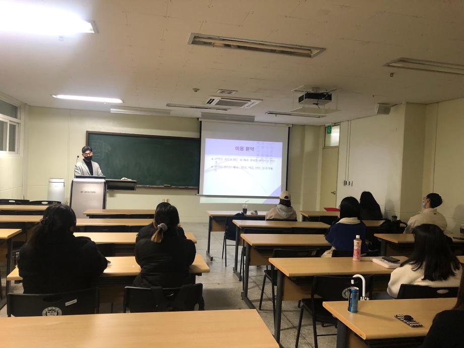 "뷰티산업과 한의학"을 주제로 한방화장품에 사용되는 약재들이 피부에 어떤 영향을 미치는지, 한의학적 이론과는 어떤 상관성이 있는지 등 여러 내용을 바탕으로 학생들에게 좋은 강연을 남겨주셨습니다^&^