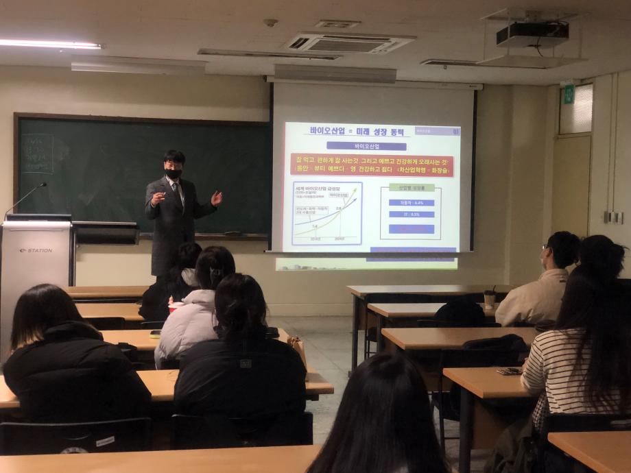 본문 시작 홈으로 커뮤니티 학과소개 학과과정 대학원 커뮤니티 연구동아리 홈페이지가이드 포토갤러리 학과공지 채용정보 학과일정 포토갤러리 유튜브 인스타그램 취업현황 학생회 조직도 졸업생 숏터뷰 포토갤러리 페이스북 트위터 프린트 [화장품산업실무체험] 김수진박사 학술특강 화장품뷰티학부 3680 2022-12-12 안녕하세요 화장품학과입니다! 우리학과 [화장품산업실무체험] 강의에서 학술특강을 진행하였는데요 :) '인트론바이오'에서 근무중이신 김수진 박사님께서 진행해 주셨습니다 ~ 바이오 시장에 대해 전반적으로 이해하는 시간을 가지고, 시장지향적인 마케팅적 사고로 전환하여 화장품분야를 다양한 관점에서 이해하는 시간을 가졌습니다 학생들에게 창의적으로 사고할수 있는 방법에 대해 강의해 주신 김수진 박사님께 감사의 말씀 전합니다 :) 목록 이전화장품학과 : 2022 캡스톤디자인 수상하다! 다음 2022년도 2학기 기말고사 시행 담당부서 : 바이오코스메틱학과 담당자 : - 연락처 : 043-649-1638 최종수정일 : 2024-10-26 만족도조사 만족도 조사 이 페이지에서 제공하는 정보에 대하여 만족하시나요? 매우만족 만족 보통 불만족 매우불만족