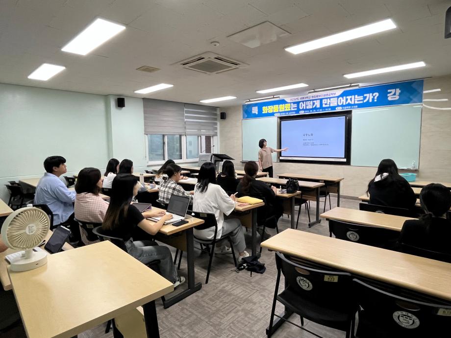 본문 시작 홈으로 커뮤니티 학과소개 학과과정 대학원 커뮤니티 연구동아리 홈페이지가이드 포토갤러리 학과공지 채용정보 학과일정 포토갤러리 유튜브 인스타그램 취업현황 학생회 조직도 졸업생 숏터뷰 포토갤러리 페이스북 트위터 프린트 2023학년도 제2회 화장품생명공학부 학술특강 화장품뷰티학부 3043 2023-09-22 2023학년도 09월 20일 제 2회 화장품산업실무체험 화장품생명공학부 학술특강을 진행하였습니다. 정은선 강사님께서 화장품 원료는 어떻게만들어지는가에 대한 강의를 해주셨습니다. 목록 이전2023학년도 제1회 화장품생명공학부 학술특강 다음 S-BOOT 전문가 초청 취업코칭 특강 담당부서 : 바이오코스메틱학과 담당자 : - 연락처 : 043-649-1638 최종수정일 : 2024-10-26 만족도조사 만족도 조사 이 페이지에서 제공하는 정보에 대하여 만족하시나요? 매우만족 만족 보통 불만족 매우불만족