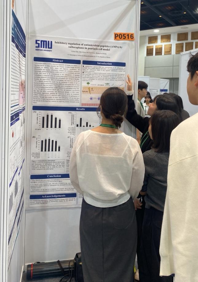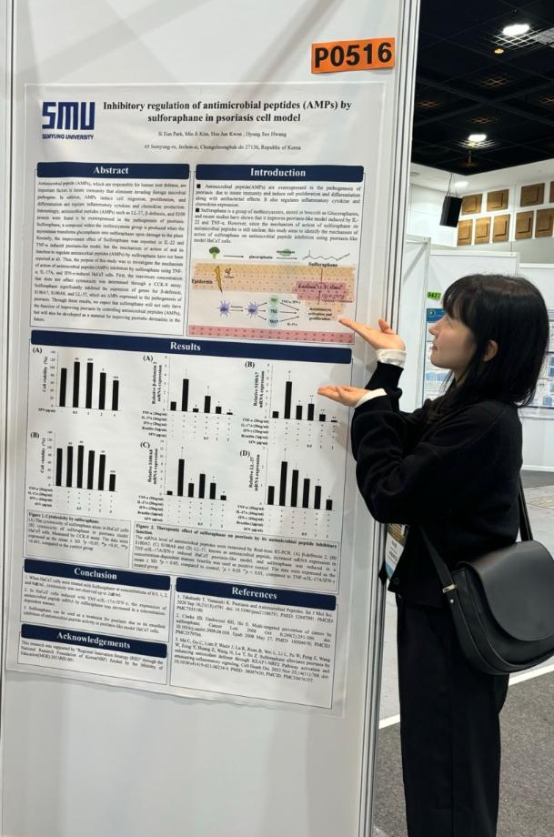 본문 시작 홈으로 커뮤니티 학과소개 학과과정 대학원 커뮤니티 연구동아리 홈페이지가이드 포토갤러리 학과공지 채용정보 학과일정 포토갤러리 유튜브 인스타그램 취업현황 학생회 조직도 졸업생 숏터뷰 포토갤러리 페이스북 트위터 프린트 2024 한국생물공학회 추계 학술발표대회 참가 바이오코스메틱학과 2497 2024-10-10 학회명 : 2024 KSBB Fall Meeting and International Symposium 일 자 : 2024.09.25(수)-27(금) 장 소 : 제주 ICC ‘건선 모델에서 Sulforaphane의 항균펩타이드 (AMPs) 억제 효능’과 ‘건선 모델에서 Ellagic acid의 케모카인 억제 효능‘의 연구를 주제로 박시은, 한예주 학생이 포스터 발표를 진행했습니다! 목록 이전제 32회 청룡축전 “향수 원데이 클래스 이벤트 부스 다음 2024 오송화장품뷰티산업엑스포 현장체험 담당부서 : 바이오코스메틱학과 담당자 : - 연락처 : 043-649-1638 최종수정일 : 2024-10-26 만족도조사 만족도 조사 이 페이지에서 제공하는 정보에 대하여 만족하시나요? 매우만족 만족 보통 불만족 매우불만족