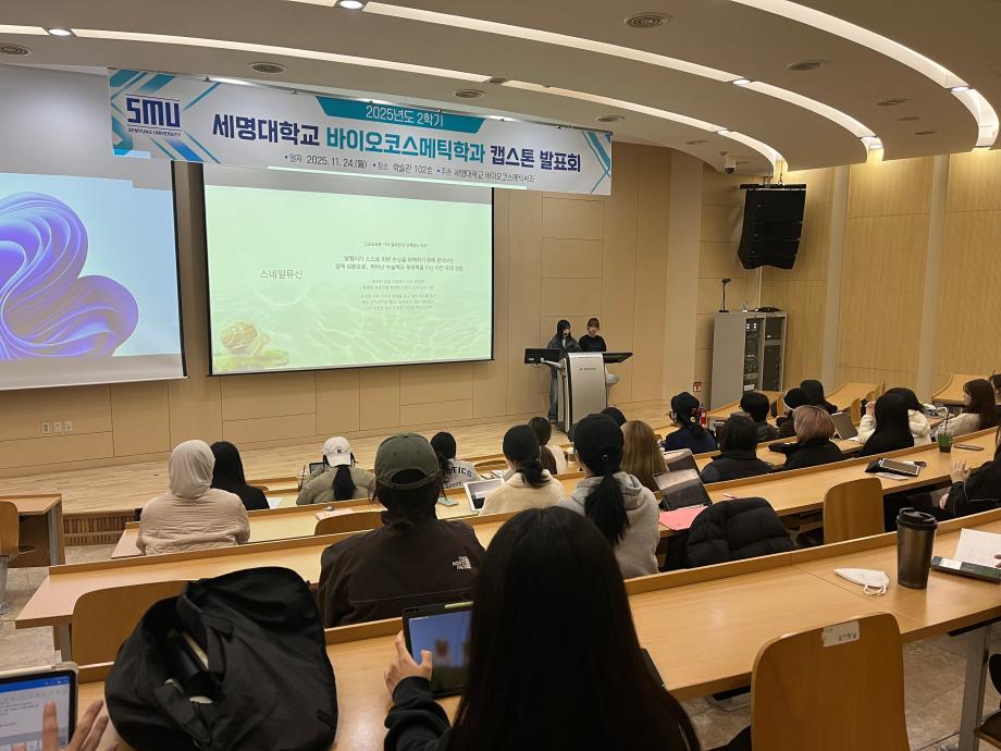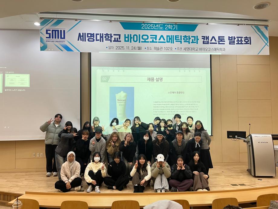 본문 시작 홈으로 커뮤니티 학과소개 학과과정 대학원 커뮤니티 연구동아리 홈페이지가이드 포토갤러리 학과공지 채용정보 학과일정 포토갤러리 유튜브 인스타그램 취업현황 학생회 조직도 졸업생 숏터뷰 포토갤러리 페이스북 트위터 프린트 2025학년도 2학기 캡스톤 디자인 발표회 바이오코스메틱학과 1124 2025-11-25 바이오코스메틱학과에서는 11월 24일 2025학년도 2학기 캡스톤 디자인 발표회를 진행하였습니다. 목록 이전2025학년도 5차 화장품생명공학세미나 다음 2025학년도 F.P.L 동아리 핸드크림 제조 실습 담당부서 : 바이오코스메틱학과 담당자 : - 연락처 : 043-649-1638 최종수정일 : 2024-10-26 만족도조사 만족도 조사 이 페이지에서 제공하는 정보에 대하여 만족하시나요? 매우만족 만족 보통 불만족 매우불만족