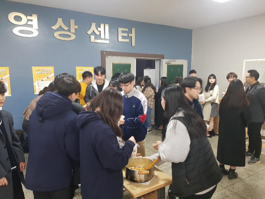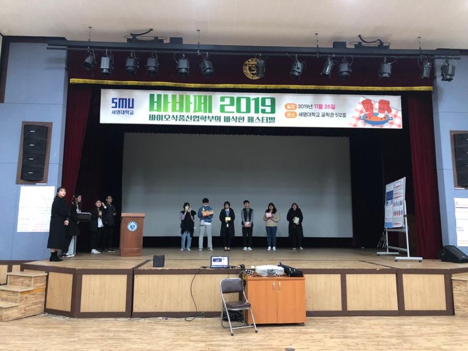 본문 시작 홈으로 커뮤니티 학부소개 진로·취업 교육과정 커뮤니티 대학원 입학상담 홈페이지가이드 갤러리 공지사항 문의게시판 학생회 전공동아리 동문회 갤러리 전공자료실 Youtube Instagram Facebook Blog 갤러리 페이스북 트위터 프린트 2019 바바페 (바이오식품산업학부 학술제) 바이오식품산업학부 5869 2019-11-28 2019년 11월 26일(화) 공학관 512호에서 진행된 바이오식품산업학부 바삭한 페스티발에 재학생 약 190명이 참여했으며 조리경연대회, 논문 및 현장실습 발표, O/X퀴즈를 진행하였다. 목록 이전실험조리 프로젝트 3( 단체급식용 샌드위치 제조 판매)실시 다음 학생경험중심 발표회 담당부서 : 바이오식품산업학부 담당자 : - 연락처 : 043-649-1431 최종수정일 : 2024-10-26 만족도조사 만족도 조사 이 페이지에서 제공하는 정보에 대하여 만족하시나요? 매우만족 만족 보통 불만족 매우불만족