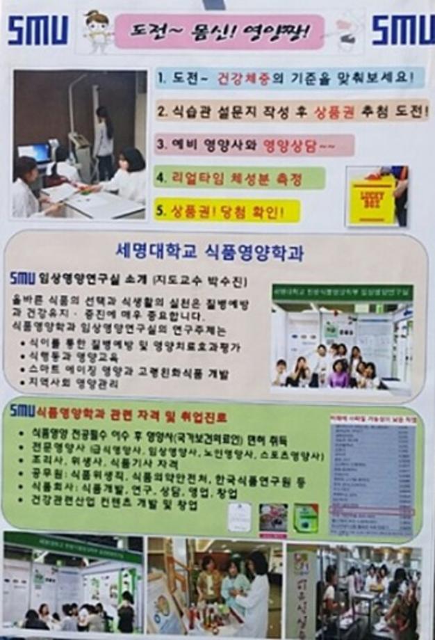 본문 시작 홈으로 커뮤니티 학부소개 진로·취업 교육과정 커뮤니티 대학원 입학상담 홈페이지가이드 갤러리 공지사항 문의게시판 학생회 전공동아리 동문회 갤러리 전공자료실 Youtube Instagram Facebook Blog 갤러리 페이스북 트위터 프린트 2015년 청룡체전 학과홍보 체성분측정 전체관리자 7216 2016-09-08 2015년 청룡체전 식품영양학과 홍보 체성분 측정 및 영양상담 입니다. 지도교수님 : 박수진 교수님 목록 이전한방식품영양학부 임상영양연구실 다음 2015년 8월 13일 후기졸업식 담당부서 : 바이오식품산업학부 담당자 : - 연락처 : 043-649-1431 최종수정일 : 2024-10-26 만족도조사 만족도 조사 이 페이지에서 제공하는 정보에 대하여 만족하시나요? 매우만족 만족 보통 불만족 매우불만족