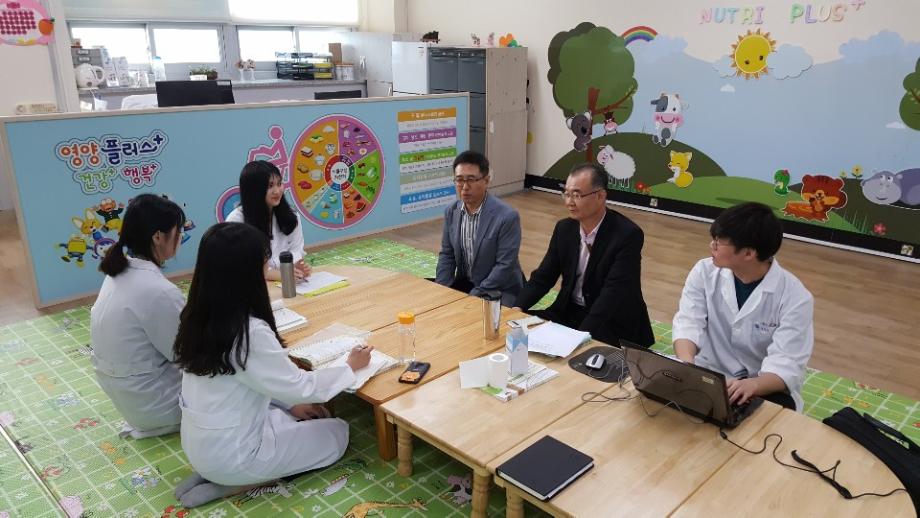 2019년 7월 3일 우리 보건바이오대학장이신 고성권 학장님과 바이오식품산업학부 오창환 학부장님이 보곤소를 방문하여 제천시보건소 건강관리과장 윤용권님, 보자건강팀장 천미경님 그리고 유현숙 영양사님을 면담하고 실습중인 정*석, 박*연, 김*수 및 심*영 학생들의 실습 현황을 지도하였습니다.