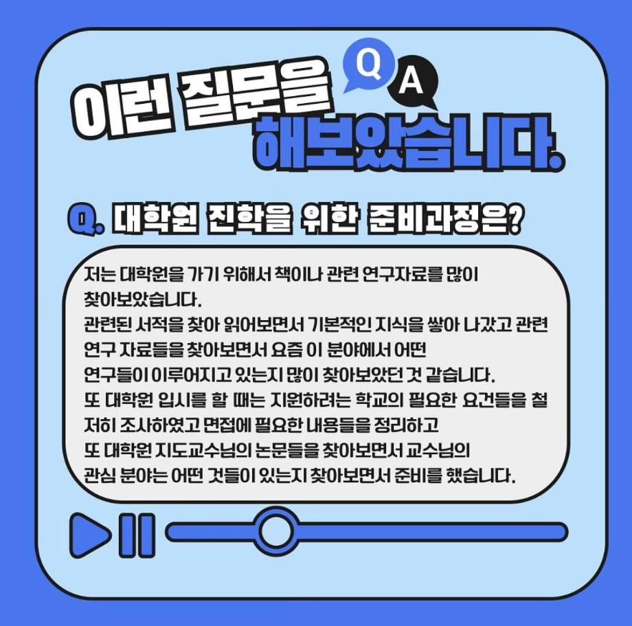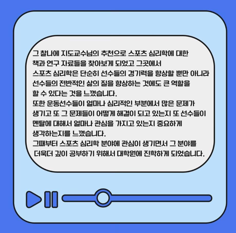 본문 시작 홈으로 커뮤니티SNS 학과소개 진로취업사례 입학안내 교육과정 커뮤니티SNS 홈페이지가이드 학과행사갤러리 학과공지 열린정보SNS 학과동아리 학과행사갤러리 학과MOU 학생회조직도 학과연혁 동문회조직도 학과행사갤러리 페이스북 트위터 프린트 대표 진학자 인터뷰 생활체육학과 1831 2024-07-17 23학년도 졸업생 중 대표 진학자와 인터뷰를 진행했습니다. 목록 이전23학년도 졸업생 진학, 취업사례 다음 대표 취업자 인터뷰 담당부서 : 생활체육학과 담당자 : - 연락처 : 043-469-1289 최종수정일 : 2024-10-26 만족도조사 만족도 조사 이 페이지에서 제공하는 정보에 대하여 만족하시나요? 매우만족 만족 보통 불만족 매우불만족