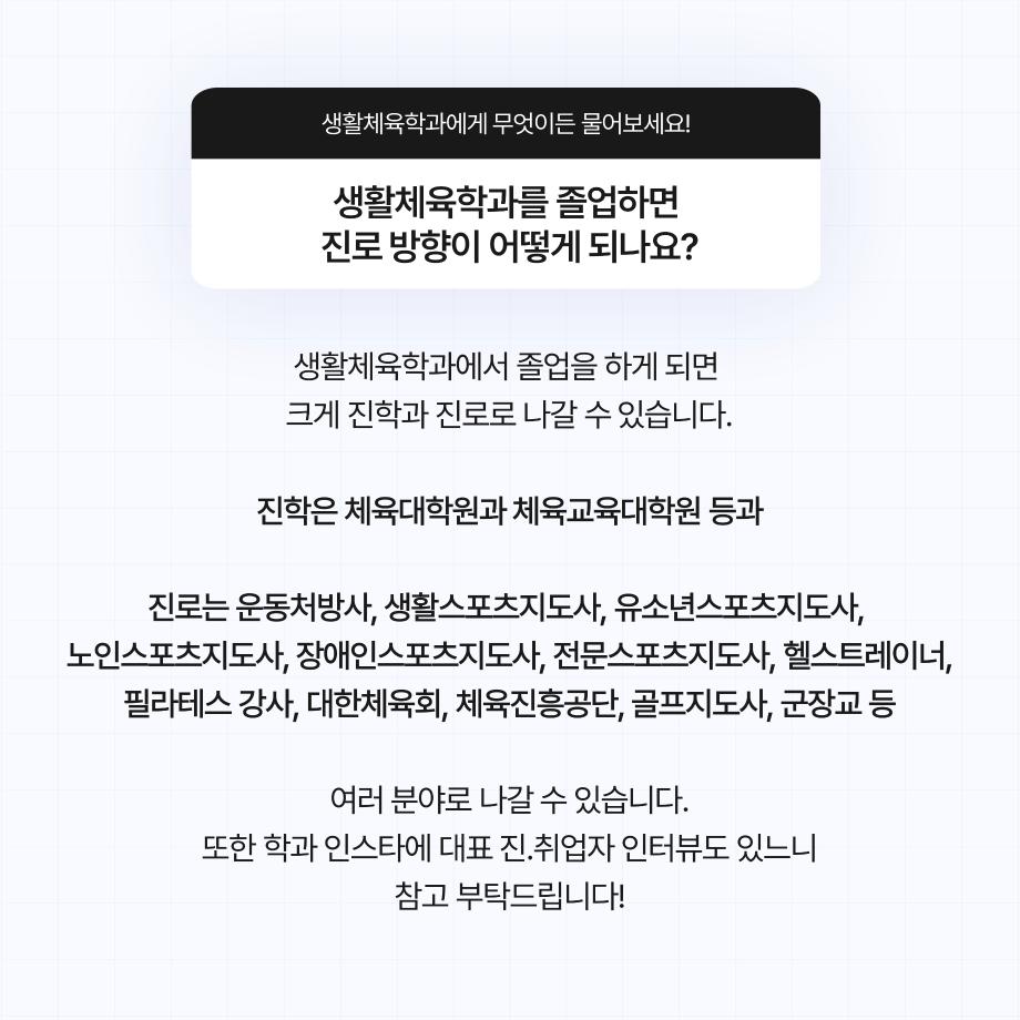 본문 시작 홈으로 커뮤니티SNS 학과소개 진로취업사례 입학안내 교육과정 커뮤니티SNS 홈페이지가이드 학과행사갤러리 학과공지 열린정보SNS 학과동아리 학과행사갤러리 학과MOU 학생회조직도 학과연혁 동문회조직도 학과행사갤러리 페이스북 트위터 프린트 생활체육학과 Q&A 생활체육학과 2531 2024-08-29 생활체육학과 Q&A 목록 이전2024학년도 학생회 다음 2024학년도 생활체육학과 MT 담당부서 : 생활체육학과 담당자 : - 연락처 : 043-469-1289 최종수정일 : 2024-10-26 만족도조사 만족도 조사 이 페이지에서 제공하는 정보에 대하여 만족하시나요? 매우만족 만족 보통 불만족 매우불만족