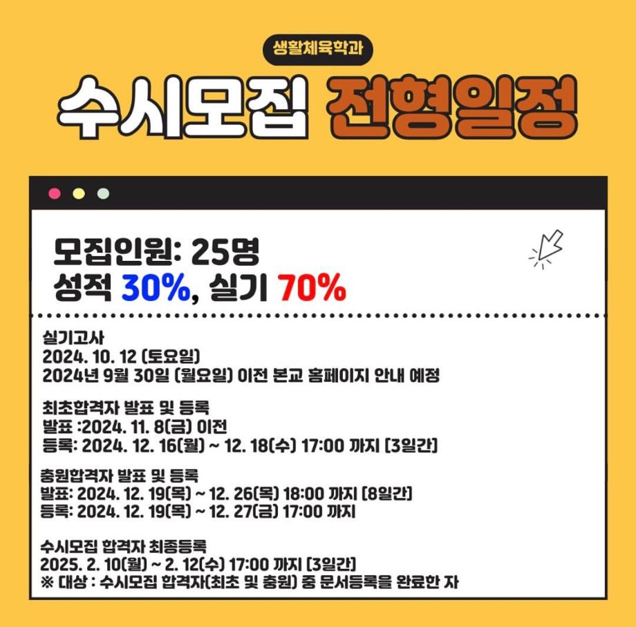 본문 시작 홈으로 커뮤니티SNS 학과소개 진로취업사례 입학안내 교육과정 커뮤니티SNS 홈페이지가이드 학과행사갤러리 학과공지 열린정보SNS 학과동아리 학과행사갤러리 학과MOU 학생회조직도 학과연혁 동문회조직도 학과행사갤러리 페이스북 트위터 프린트 생활체육학과 2025학년도 수시모집 실기고사 생활체육학과 2535 2024-10-07 생활체육학과 2025학년도 수시모집 실기고사 목록 이전2024학년도 1학년 축구 수업 팀별 단체사진 다음 2024학년도 총장배 대비 축구, 피구 연습 담당부서 : 생활체육학과 담당자 : - 연락처 : 043-469-1289 최종수정일 : 2024-10-26 만족도조사 만족도 조사 이 페이지에서 제공하는 정보에 대하여 만족하시나요? 매우만족 만족 보통 불만족 매우불만족