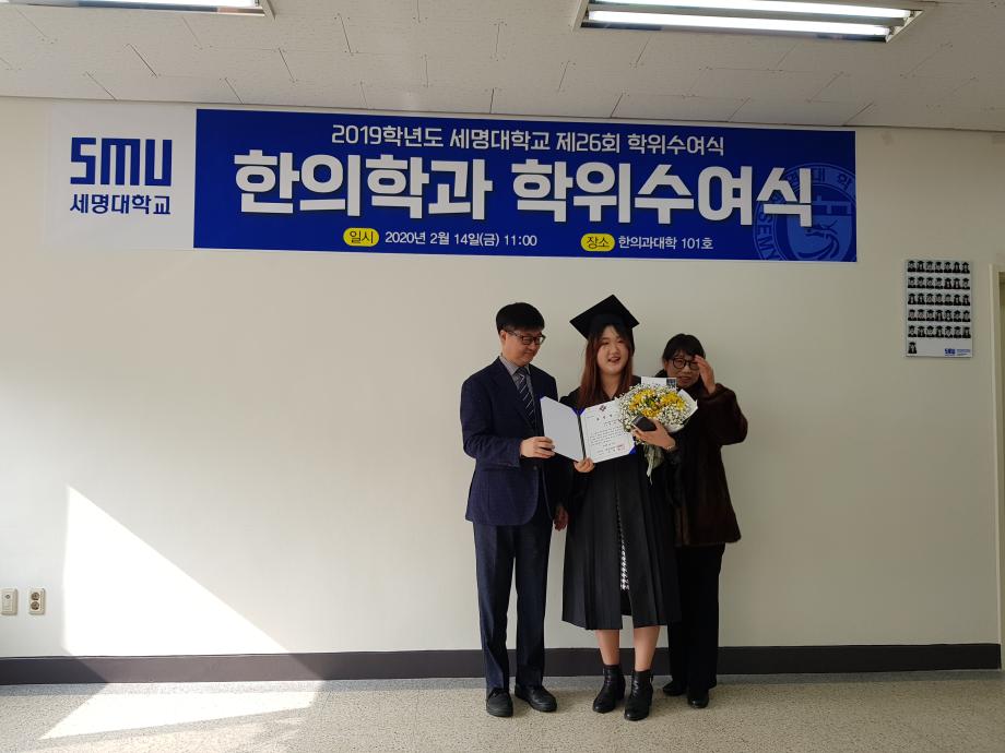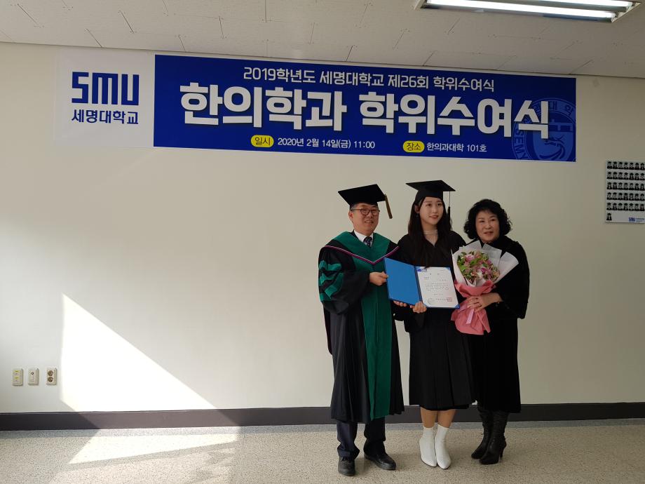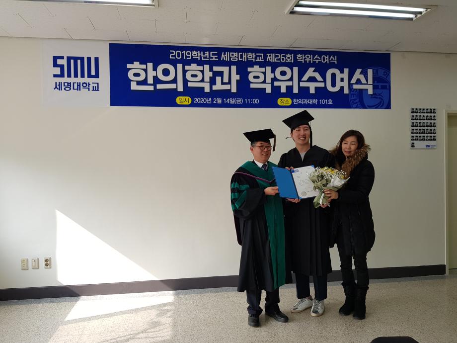 본문 시작 홈으로 대학소식 대학소개 교수소개 대학과정 커뮤니티 대학원 대학소식 홈페이지가이드 포토갤러리 학과공지 포토갤러리 발전기금 위원회 관련사이트 포토갤러리 페이스북 트위터 프린트 2019학년도 한의학과 전기 학위수여식 한의과대학 12314 2020-02-18 한의학과 졸업생들 모두에게 졸업을 축하드립니다. 코로나19의 발생으로 교육부 지침에 따라 세명대학교 공식 학위수여식이 취소되어 한의과대학에서 졸업자 시상식(총장상, 한의사협회장상, 한의학회장상, 동문회장상 등)으로 조촐하게 진행하였습니다. 아울러, 졸업예정자의 학사 학위(졸업장)은 학과사무실에서 택배로 개별 송부하였음을 알려드립니다. 목록 이전2019학년도 한의학교육 교수워크샵 다음 제76회 한의사 국가고시 4년 연속 재학생 100% 합격 담당부서 : 한의과대학 담당자 : - 연락처 : 043-649-1701 최종수정일 : 2024-10-26 만족도조사 만족도 조사 이 페이지에서 제공하는 정보에 대하여 만족하시나요? 매우만족 만족 보통 불만족 매우불만족