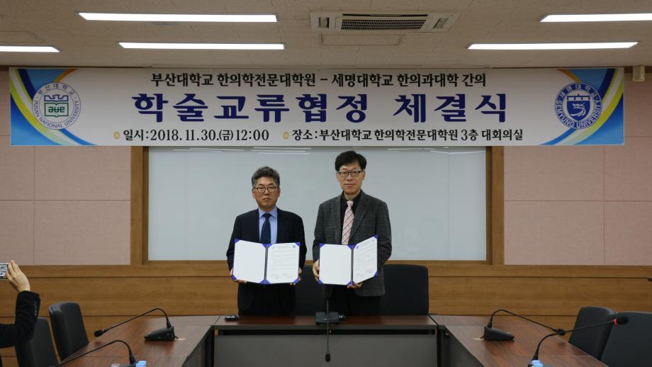 본문 시작 홈으로 대학소식 대학소개 교수소개 대학과정 커뮤니티 대학원 대학소식 홈페이지가이드 포토갤러리 학과공지 포토갤러리 발전기금 위원회 관련사이트 포토갤러리 페이스북 트위터 프린트 세명대학교 한의과대학- 부산대학교 한의학전문대학원 MOU 체결 한의과대학 7221 2018-12-05 세명대학교 한의과대학(학장 김호현)은 2018년 11월 30일 부산대학교 한의학전문대학원과 한의학 교육의 협력과 발전을 위해 상호협력협약을 체결하였다. 두 기관은 상호협력협약을 통해 한의학 임상교육에 필요한 임상실습지침서와 임상실습 프로그램을 연구・개발・시행・평가하며, 표준화환자를 훈련・시행・평가하며, 원활한 임상실습을 위해 상호 파견과 참관하는 분야에서 공동의 노력을 다함으로써 한의학 임상교육 발전에 큰 기여를 하리라 기대하고 있다. 목록 이전2018년 미니체육대회 다음 2018학년도 학위수여식 담당부서 : 한의과대학 담당자 : - 연락처 : 043-649-1701 최종수정일 : 2024-10-26 만족도조사 만족도 조사 이 페이지에서 제공하는 정보에 대하여 만족하시나요? 매우만족 만족 보통 불만족 매우불만족