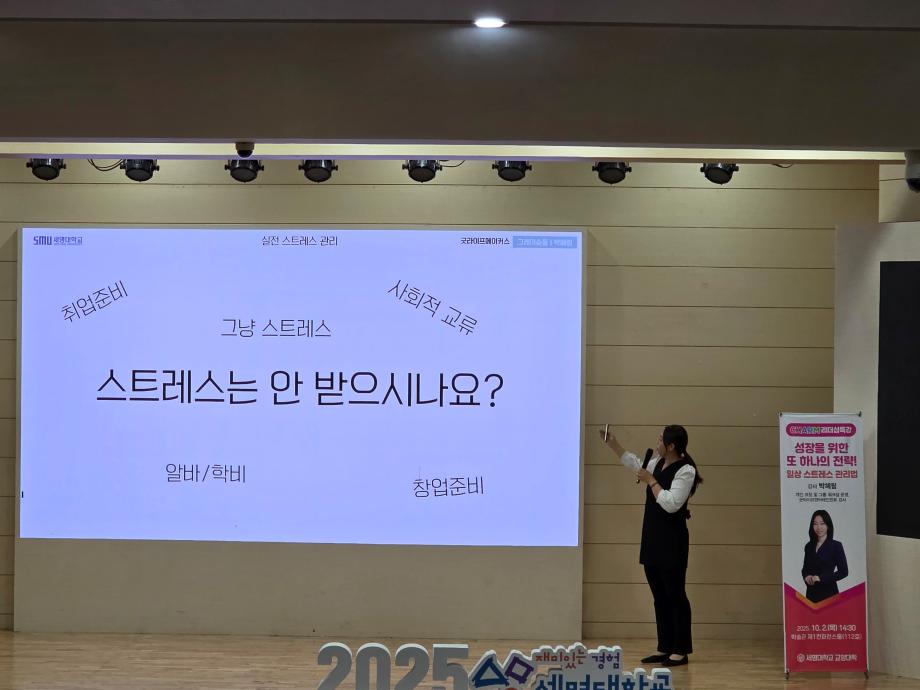 본문 시작 홈으로 커뮤니티 게시판 대학소개 교수소개 교양교육과정 교양교육 프로그램 커뮤니티 게시판 입학안내 홈페이지가이드 자료실 공지사항 자료실 학생 커뮤니티 취업정보 CHARM리더십특강 CHARM리더십특강 CHARM커뮤니케이션 제천문화탐방과 스토리텔링 CHARM인문학콘서트~2018 향토문화탐방~2018 특강 및 기타 행사 포토 갤러리 CHARM리더십특강 페이스북 트위터 프린트 2025-2학기 CHARM리더십특강 5주차 강의 교양대학 772 2025-10-02 2025-2학기 CHARM리더십특강 5주차 강의 성장을 위한 또 하나의 전략! 일상 스트레스 관리법_박혜림강사님 목록 이전2025-2학기 CHARM리더십특강 3주차 강의 다음 2025-2학기 CHARM리더십특강 9주차 강의 담당부서 : 교양대학 담당자 : - 연락처 : 043-649-7065 최종수정일 : 2024-10-26 만족도조사 만족도 조사 이 페이지에서 제공하는 정보에 대하여 만족하시나요? 매우만족 만족 보통 불만족 매우불만족