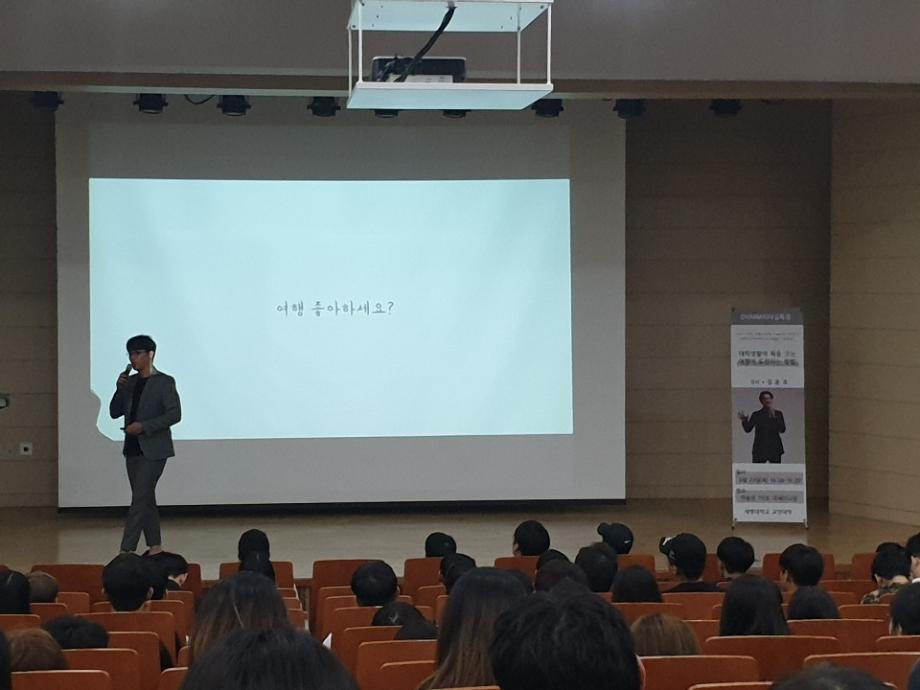 본문 시작 홈으로 커뮤니티 게시판 대학소개 교수소개 교양교육과정 교양교육 프로그램 커뮤니티 게시판 입학안내 홈페이지가이드 자료실 공지사항 자료실 학생 커뮤니티 취업정보 CHARM리더십특강 CHARM리더십특강 CHARM커뮤니케이션 제천문화탐방과 스토리텔링 CHARM인문학콘서트~2018 향토문화탐방~2018 특강 및 기타 행사 포토 갤러리 CHARM리더십특강 페이스북 트위터 프린트 2019-1학기 CHARM 리더십특강 12주차 교양대학 3946 2019-05-23 대학생활에 획을 긋는 여행에 도전하는 방법 [ 김 훈 호 강사님] * 일시 : 2019. 05. 23(목) * 장소 : 학술관 112호 목록 이전2019-1학기 CHARM 리더십특강 11주차 다음 2019-1학기 CHARM 리더십특강 13주차 담당부서 : 교양대학 담당자 : - 연락처 : 043-649-7065 최종수정일 : 2024-10-26 만족도조사 만족도 조사 이 페이지에서 제공하는 정보에 대하여 만족하시나요? 매우만족 만족 보통 불만족 매우불만족