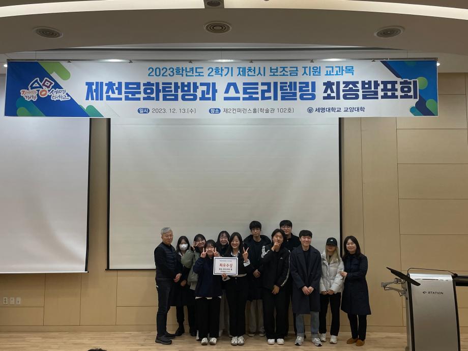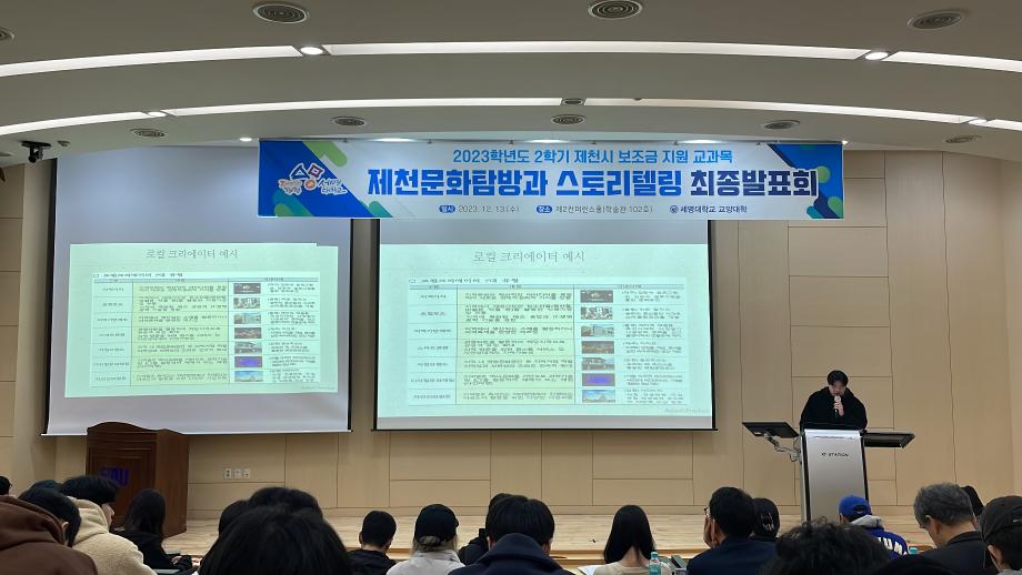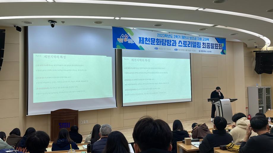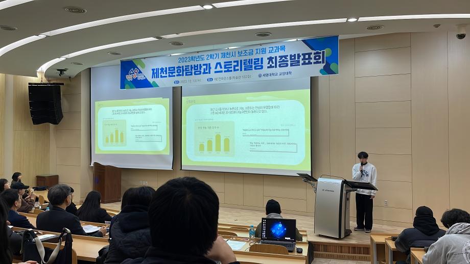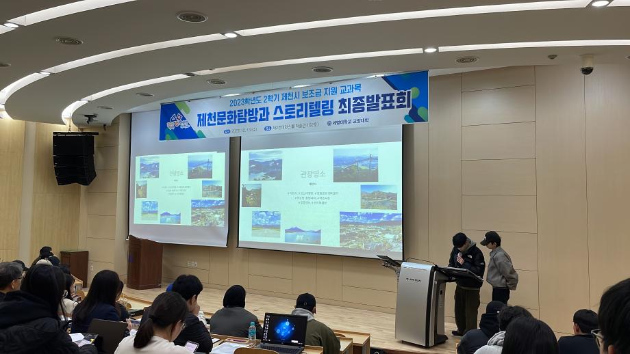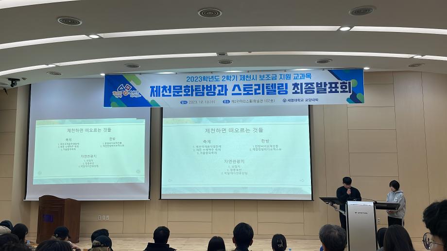 본문 시작 홈으로 커뮤니티 게시판 대학소개 교수소개 교양교육과정 교양교육 프로그램 커뮤니티 게시판 입학안내 홈페이지가이드 자료실 공지사항 자료실 학생 커뮤니티 취업정보 제천문화탐방과 스토리텔링 CHARM리더십특강 CHARM커뮤니케이션 제천문화탐방과 스토리텔링 CHARM인문학콘서트~2018 향토문화탐방~2018 특강 및 기타 행사 포토 갤러리 제천문화탐방과 스토리텔링 페이스북 트위터 프린트 2023-2학기 제천문화탐방과 스토리텔링 프레젠테이션 발표 및 수여식 교양대학 2837 2023-12-13 2023-2학기 제천문화탐방과 스토리텔링 프레젠테이션 발표 및 수여식 2023년 12월 13일(수) 13:30~15:30 / 학술관 102호 목록 이전2023-2학기 제천문화탐방과스토리텔링 4차탐방 다음 2024-1학기 제천문화탐방과스토리텔링 1주차 강의 담당부서 : 교양대학 담당자 : - 연락처 : 043-649-7065 최종수정일 : 2024-10-26 만족도조사 만족도 조사 이 페이지에서 제공하는 정보에 대하여 만족하시나요? 매우만족 만족 보통 불만족 매우불만족