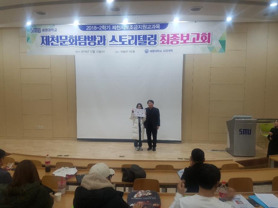 본문 시작 홈으로 커뮤니티 게시판 대학소개 교수소개 교양교육과정 교양교육 프로그램 커뮤니티 게시판 입학안내 홈페이지가이드 자료실 공지사항 자료실 학생 커뮤니티 취업정보 제천문화탐방과 스토리텔링 CHARM리더십특강 CHARM커뮤니케이션 제천문화탐방과 스토리텔링 CHARM인문학콘서트~2018 향토문화탐방~2018 특강 및 기타 행사 포토 갤러리 제천문화탐방과 스토리텔링 페이스북 트위터 프린트 2018-2학기 제천문화탐방과 스토리텔링 프레젠테이션 발표 및 수여식 교양대학 6490 2018-12-12 2018-2학기 제천문화탐방과 스토리텔링 프레젠테이션 발표 및 수여식 목록 이전2018-2학기 제천문화탐방과 스토리텔링 (12월 05일) -한방 바이오 엑스포 공원 다음 2019-1학기 제천문화탐방과 스토리텔링 (4월 03일) -제천 중앙시장, 교동 민화마을 담당부서 : 교양대학 담당자 : - 연락처 : 043-649-7065 최종수정일 : 2024-10-26 만족도조사 만족도 조사 이 페이지에서 제공하는 정보에 대하여 만족하시나요? 매우만족 만족 보통 불만족 매우불만족