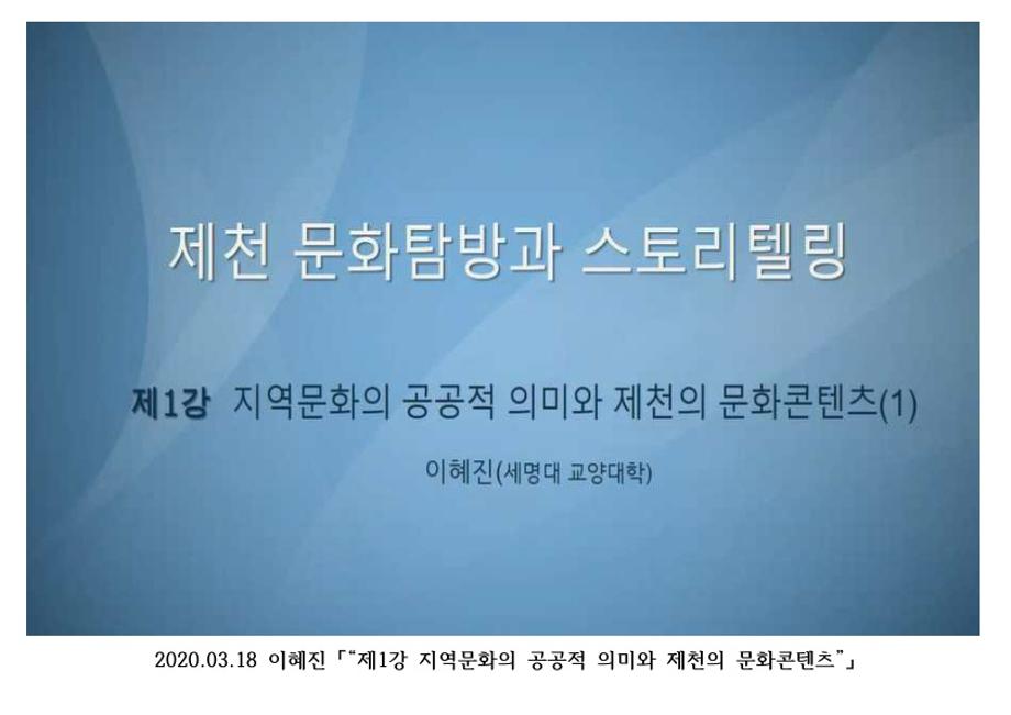본문 시작 홈으로 커뮤니티 게시판 대학소개 교수소개 교양교육과정 교양교육 프로그램 커뮤니티 게시판 입학안내 홈페이지가이드 자료실 공지사항 자료실 학생 커뮤니티 취업정보 제천문화탐방과 스토리텔링 CHARM리더십특강 CHARM커뮤니케이션 제천문화탐방과 스토리텔링 CHARM인문학콘서트~2018 향토문화탐방~2018 특강 및 기타 행사 포토 갤러리 제천문화탐방과 스토리텔링 페이스북 트위터 프린트 2020-1학기 제천문화탐방과 스토리테링 1-6주차 강의 교양대학 8603 2020-06-05 1주차 - 3/18 이혜진 "오리엔테이션&지역문화의 공공적 의미와 제천의 문화콘텐츠" 2주차 - 3/25 이혜진 "지역문화콘텐츠와 스토리텔링" 3주차 - 4/1 이혜진 "제천의 여행문화와 레저" 4주차 - 4/8 최자운 "제천의 축제와 지역문화" 5주차 - 제21대 국회의원 선거일 6주차 - 4/22 이혜진 "문화콘텐츠 기획의 전략" 목록 이전2019-2학기 제천문화탐방과 스토리텔링 프레젠테이션 발표 및 수여식 다음 2020-1학기 제천문화탐방과 스토리테링 7-11주차 강의 담당부서 : 교양대학 담당자 : - 연락처 : 043-649-7065 최종수정일 : 2024-10-26 만족도조사 만족도 조사 이 페이지에서 제공하는 정보에 대하여 만족하시나요? 매우만족 만족 보통 불만족 매우불만족