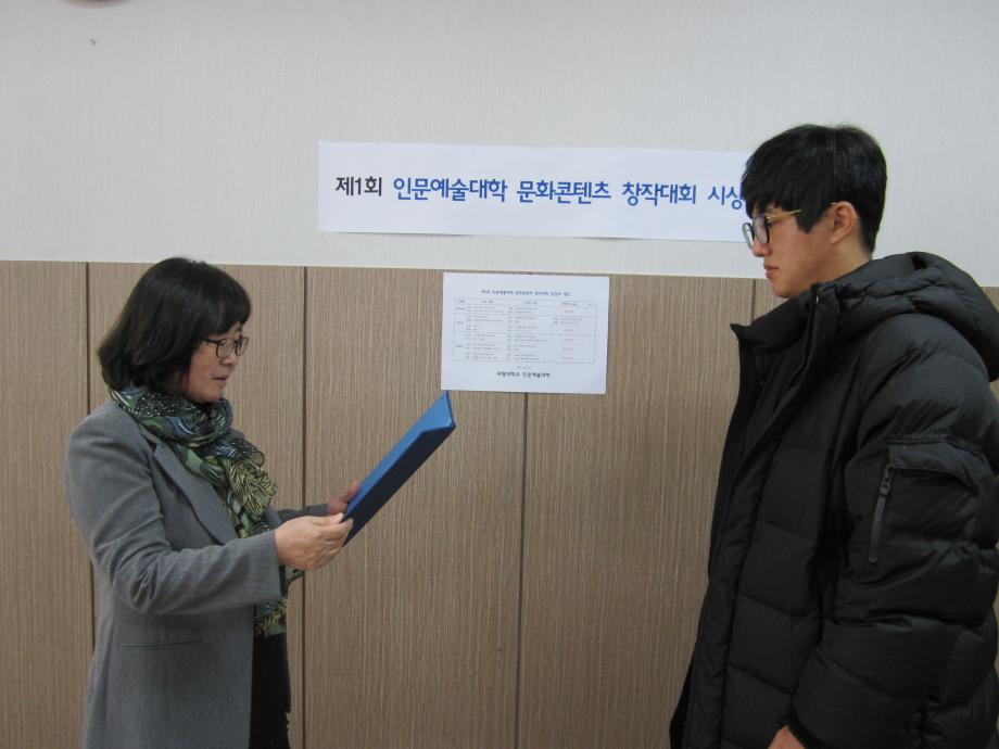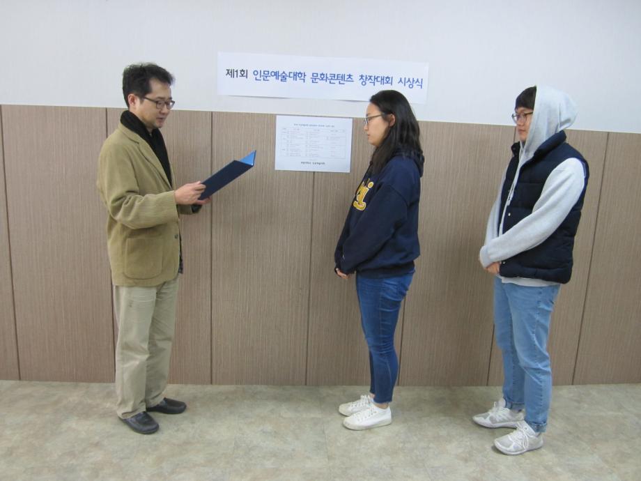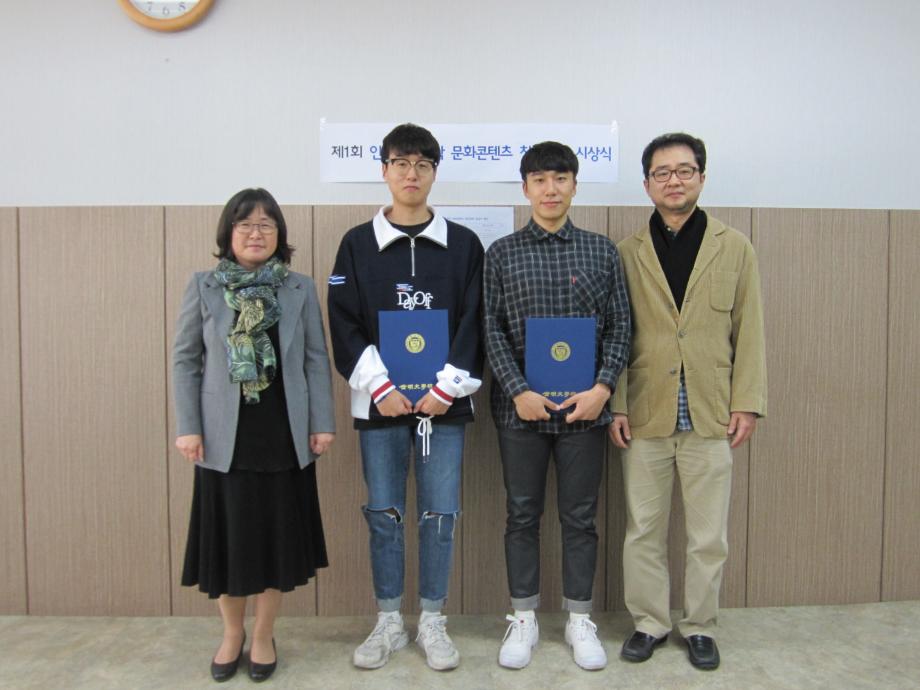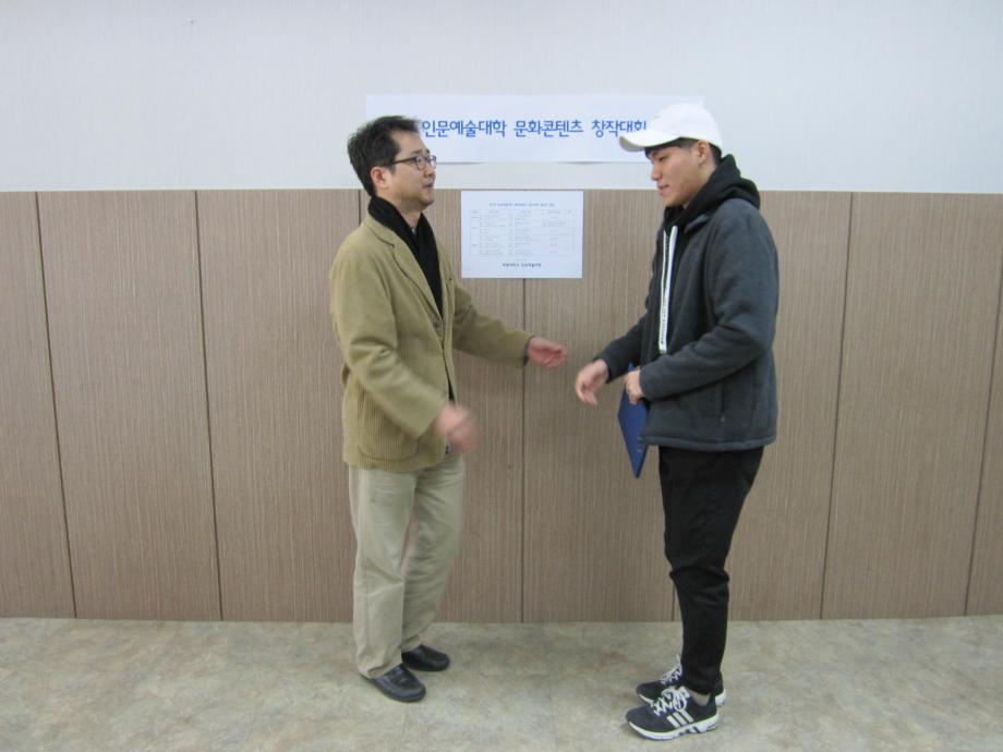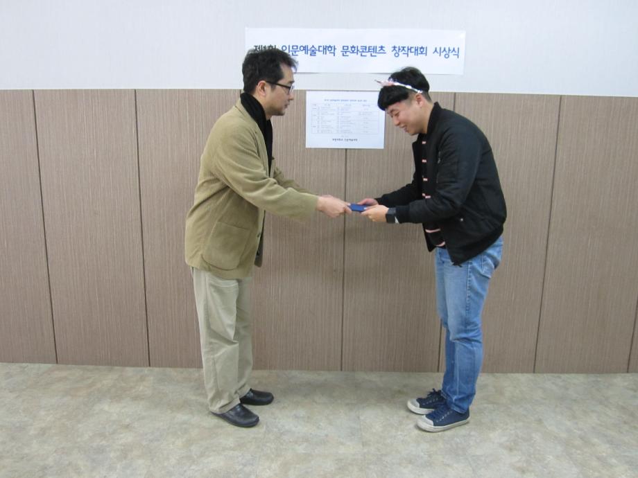 본문 시작 홈으로 커뮤니티 대학소개 학과소개 입학안내 커뮤니티 홈페이지가이드 사진 자료실 대학소식 학과소식 자료실 사진 자료실 동영상 자료실 사진 자료실 페이스북 트위터 프린트 제1회 문화콘텐츠 창작대회 시상식 사진 인문예술대학 8473 2017-10-31 제1회 인문예술대학 문화콘텐츠 창작대회 시상식 사진 날짜 : 2017. 10. 31(화) 15:20 장소 : 인문예술대학 학장실(인문학관 109-1호) 시상 : 원유경 학장, 구재진 미디어문화학부장, 임대우 디지털콘텐츠창작학과장 목록 이전2017 산업디자인학과 취업특강 사진 자료 다음 명사특강 진중권교수[사진] 담당부서 : 인문예술대학 담당자 : - 연락처 : 043-649-7402 최종수정일 : 2024-10-26 만족도조사 만족도 조사 이 페이지에서 제공하는 정보에 대하여 만족하시나요? 매우만족 만족 보통 불만족 매우불만족
